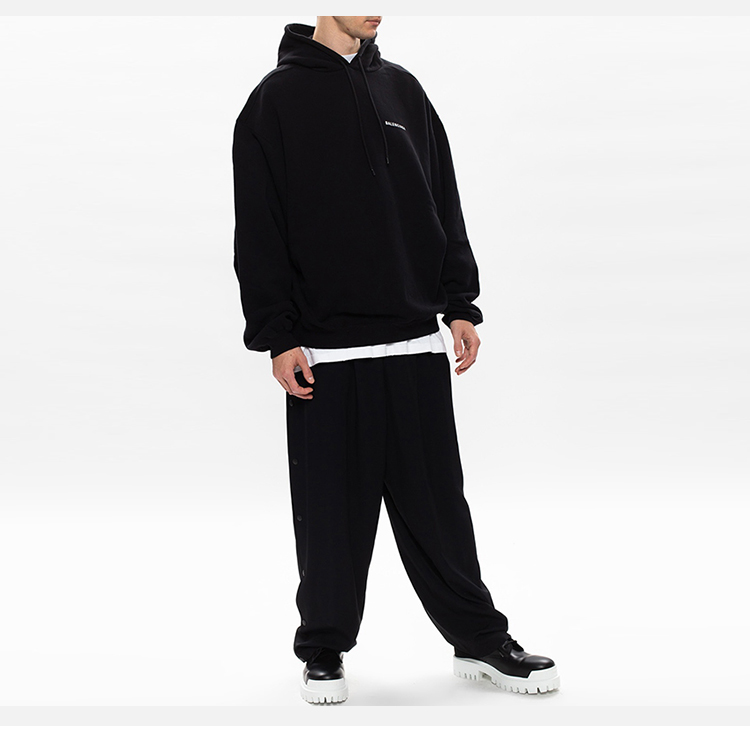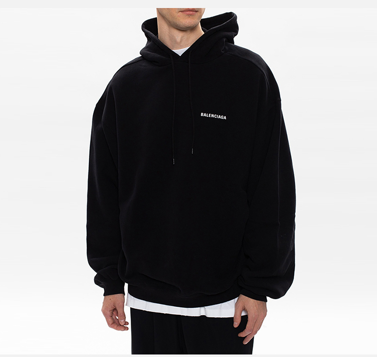 BALENCIAGA 巴黎世家 男士棉质字母徽标印花连帽卫衣 黑色 641679 TJVE5 1000