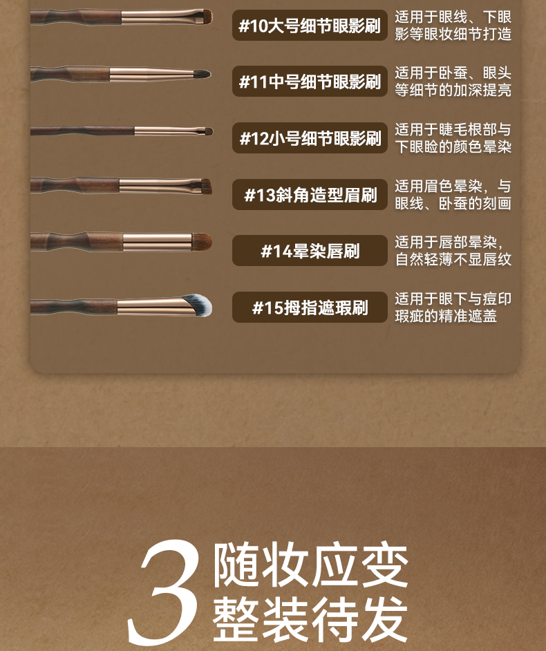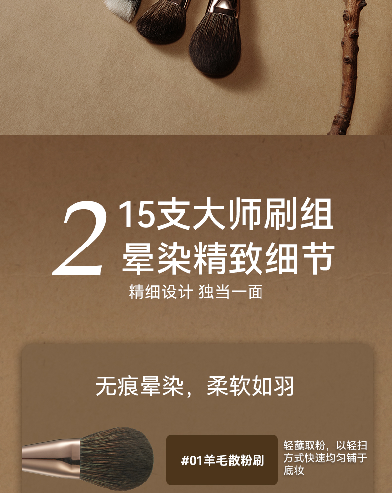 WINDCCI大师化妆刷15支套刷羊毛实木化妆刷套装海马体门店同款