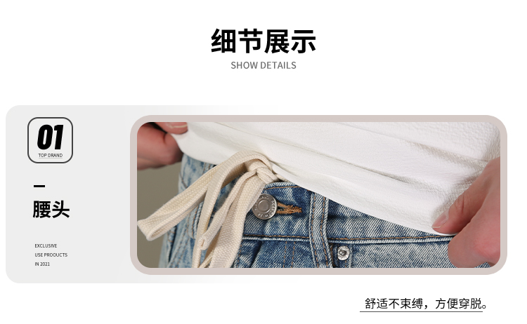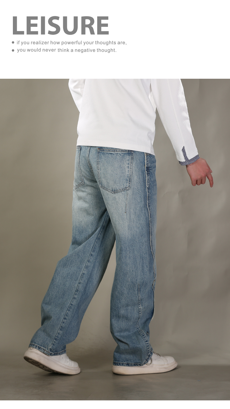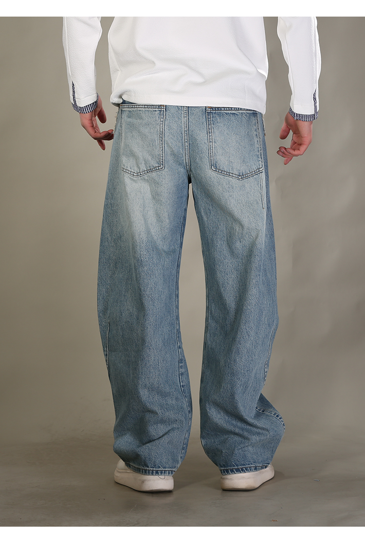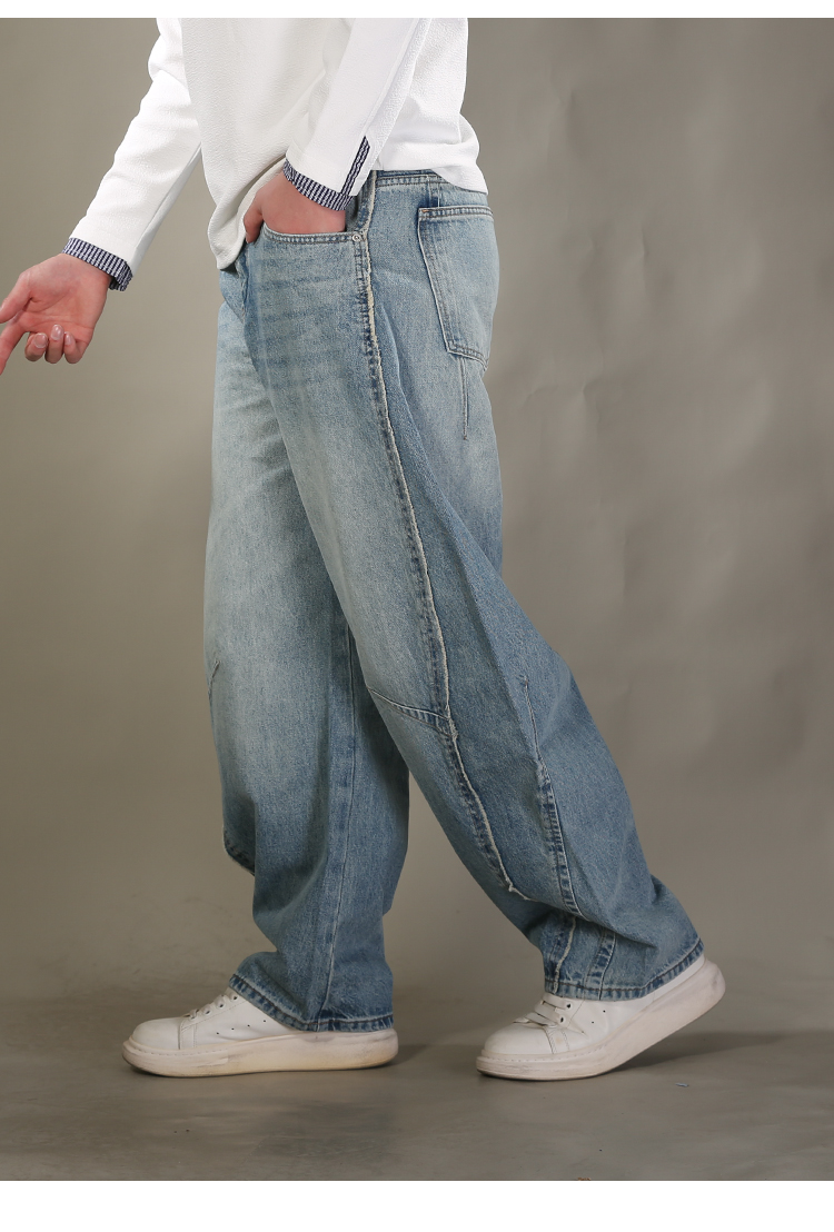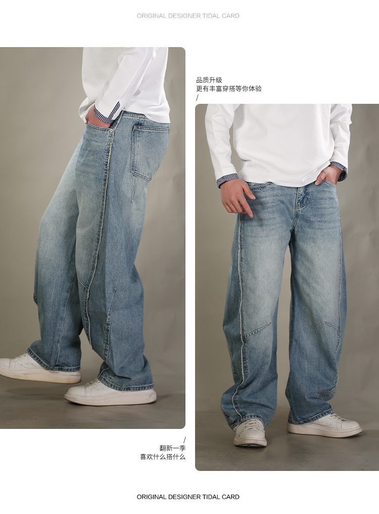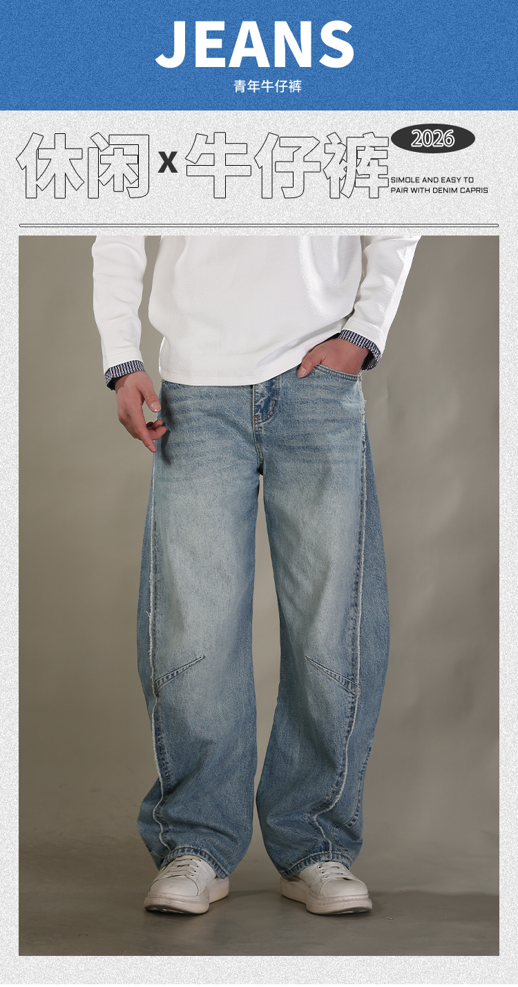 DRONKOO 2026 内抽绳半松紧腰前破骨毛边膝捏褶中厚牛仔长裤