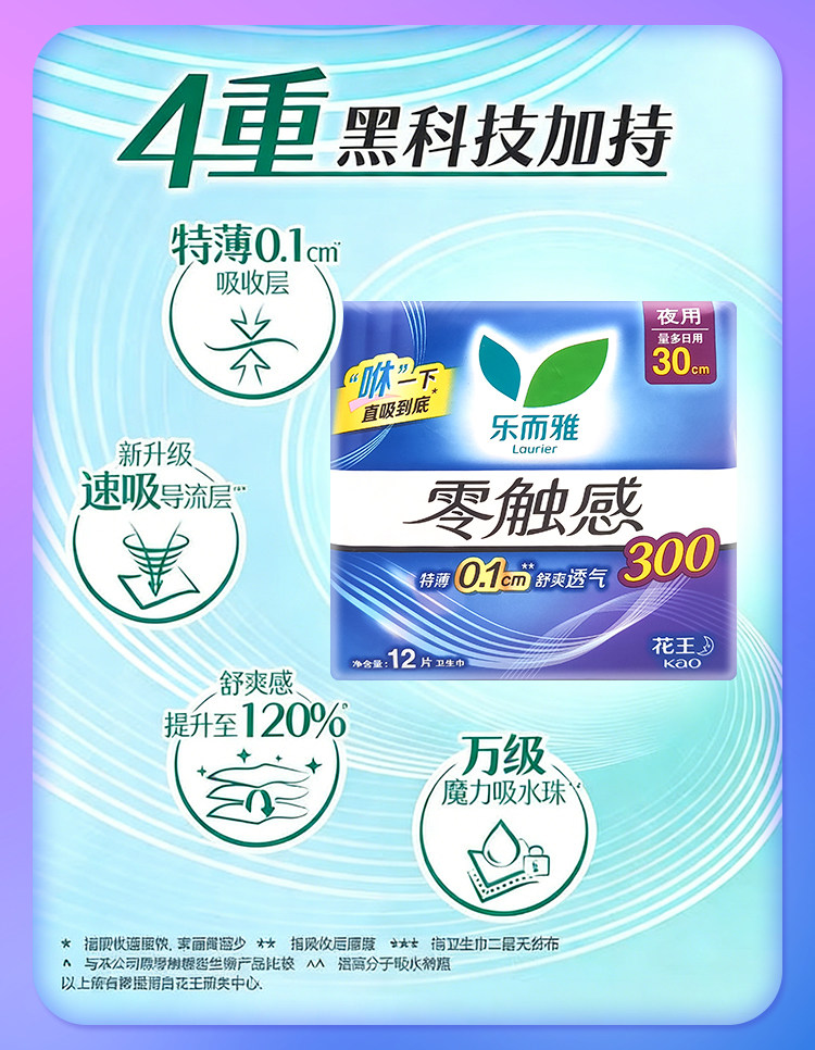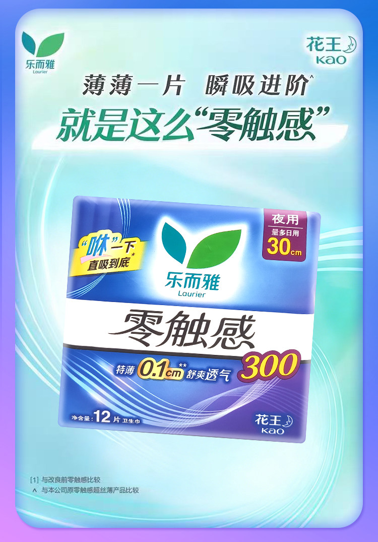 花王乐而雅 零触感特薄夜用卫生巾300mm*12p