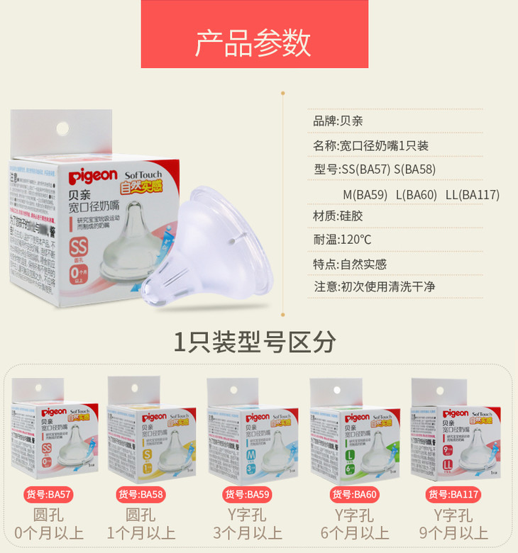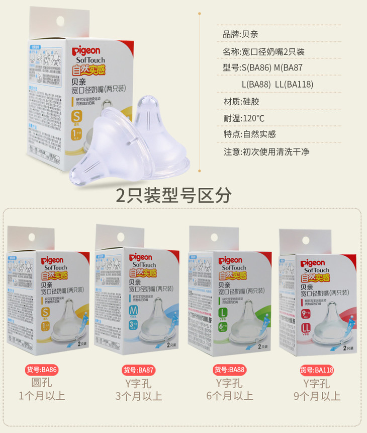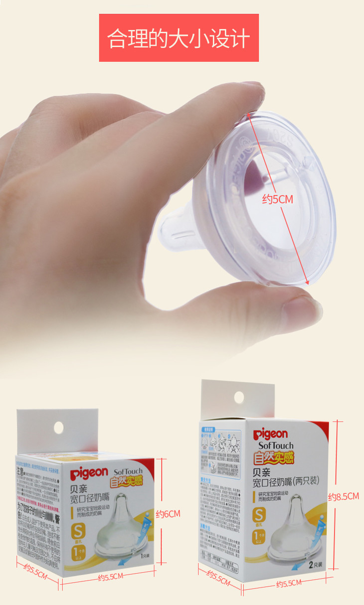 贝亲 母乳实感奶嘴 宽口径硅胶奶嘴0个月 S号 2个装