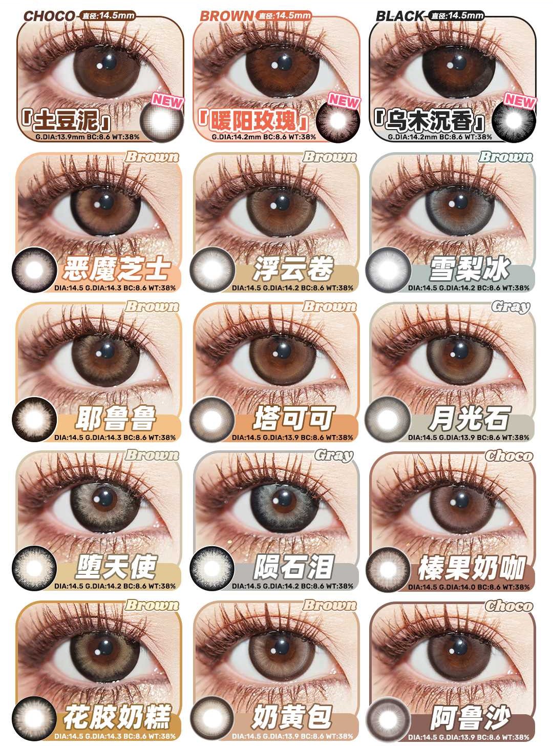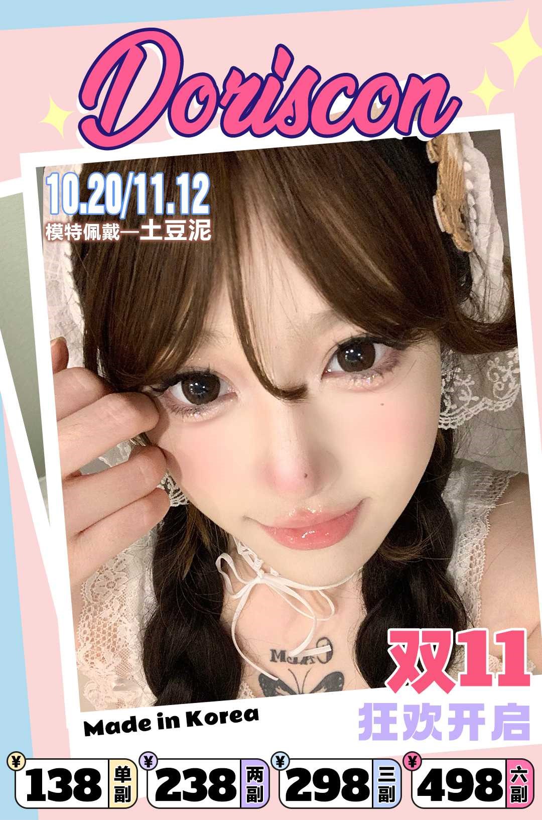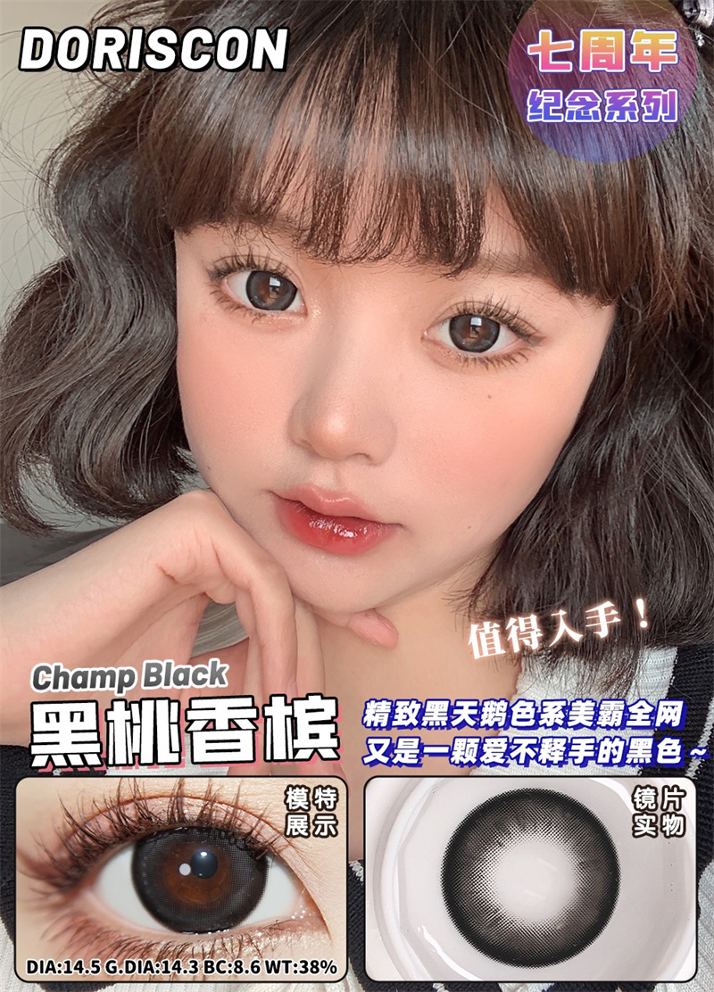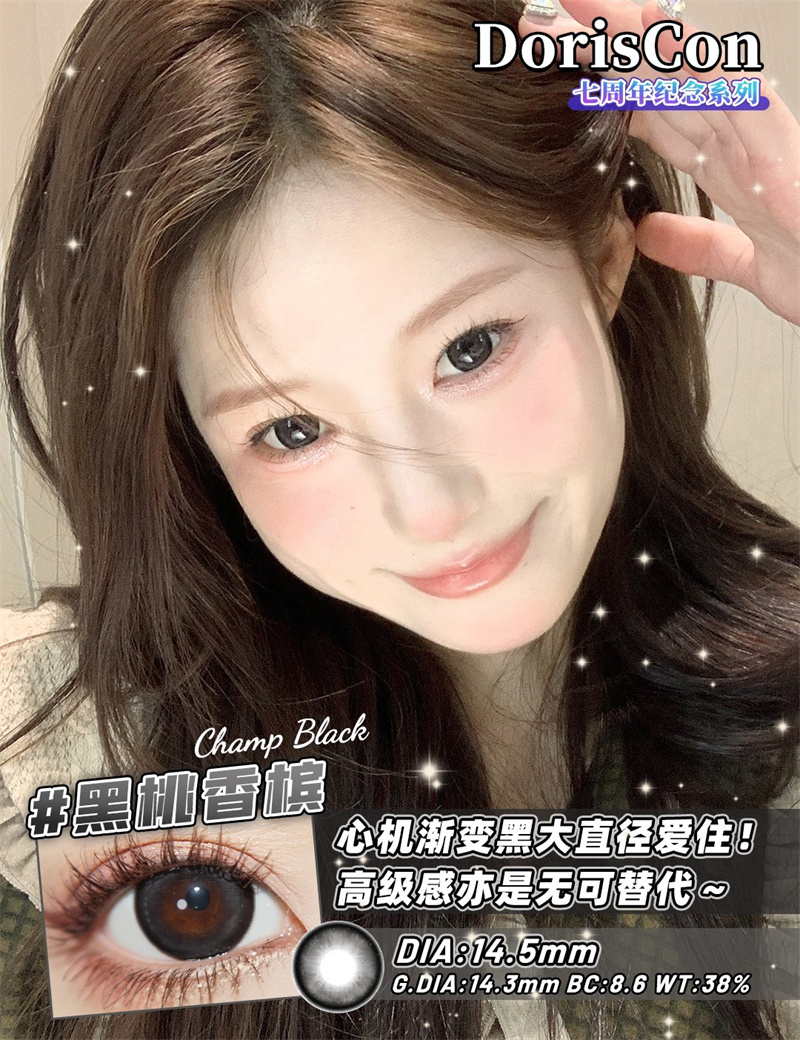 doriscon,黑桃香槟,半年抛/直径14.5/着色13.9,138/一副,238/两副,288/三副,下拉查看更多模特实拍,最高度数有1000