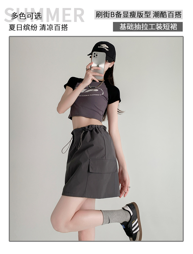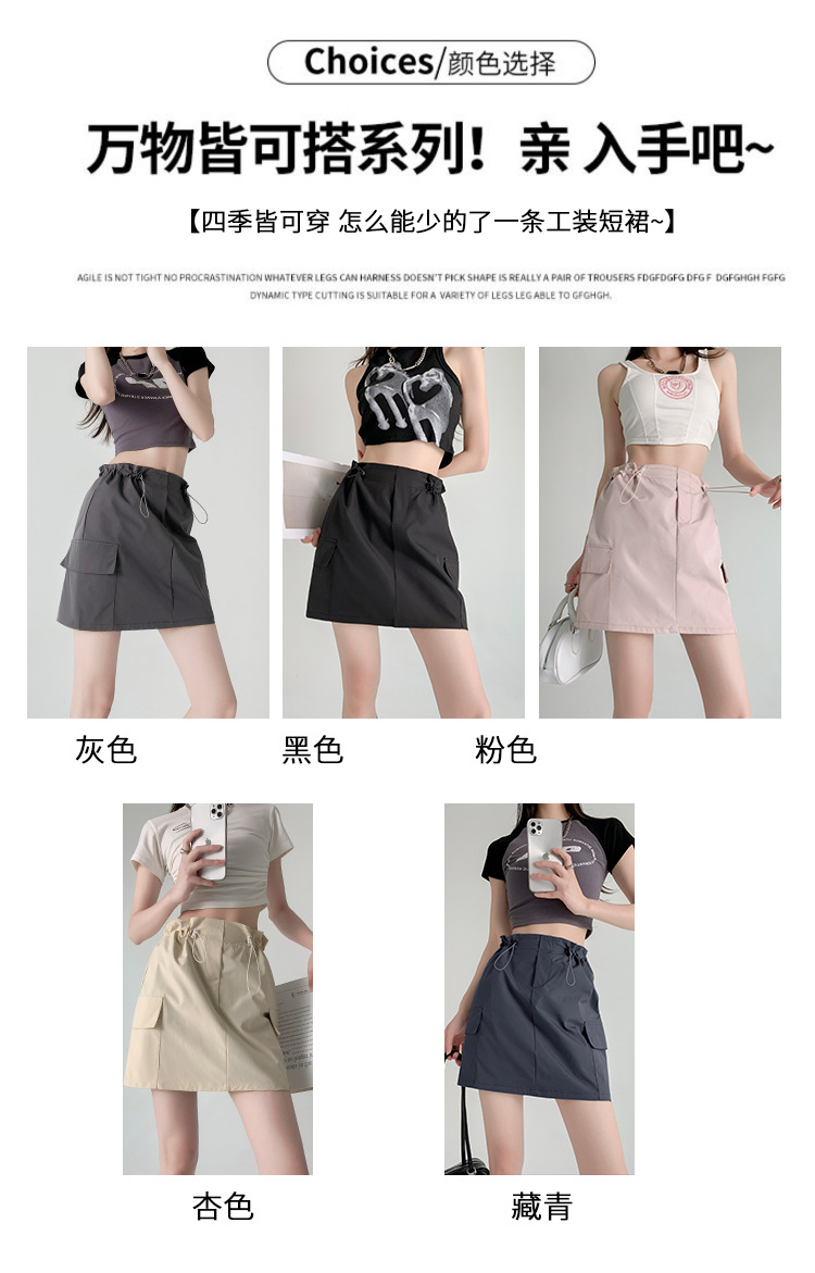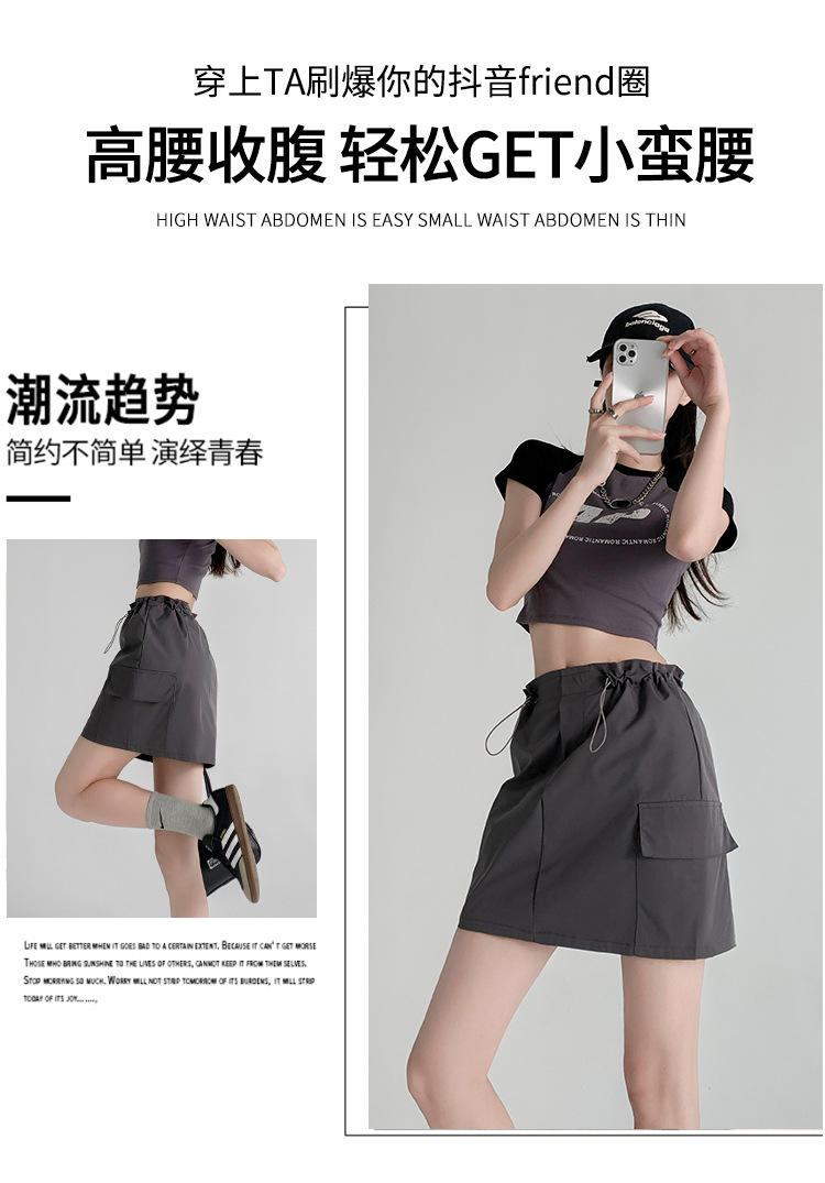 【新品必入,美式工装半身裙!】高腰设计,打造显瘦个性。夏日新款,包臀裙款式,设计感十足,小个子也可穿出长腿范儿!