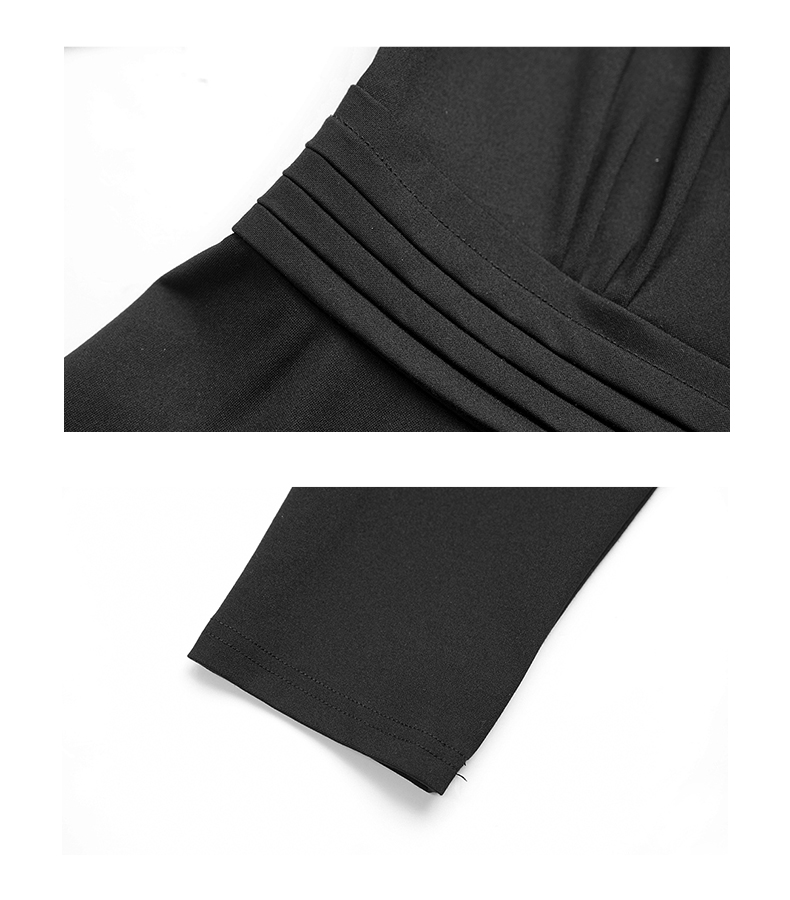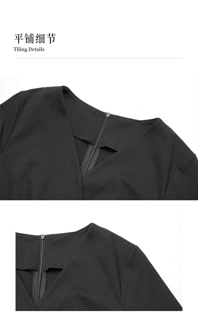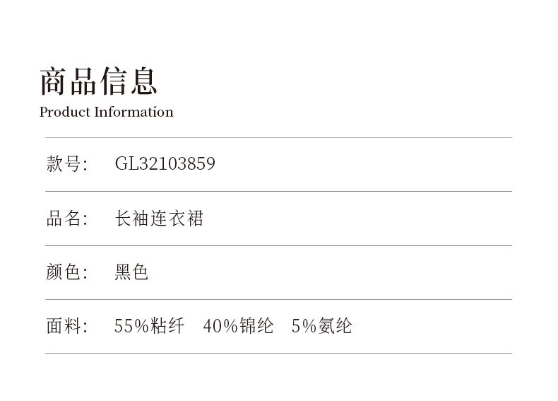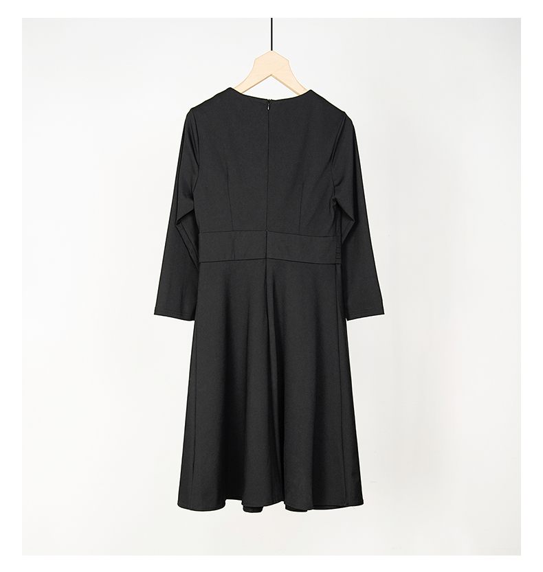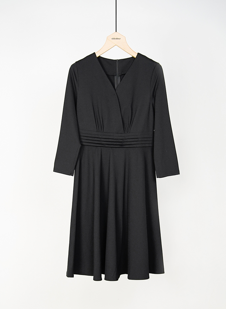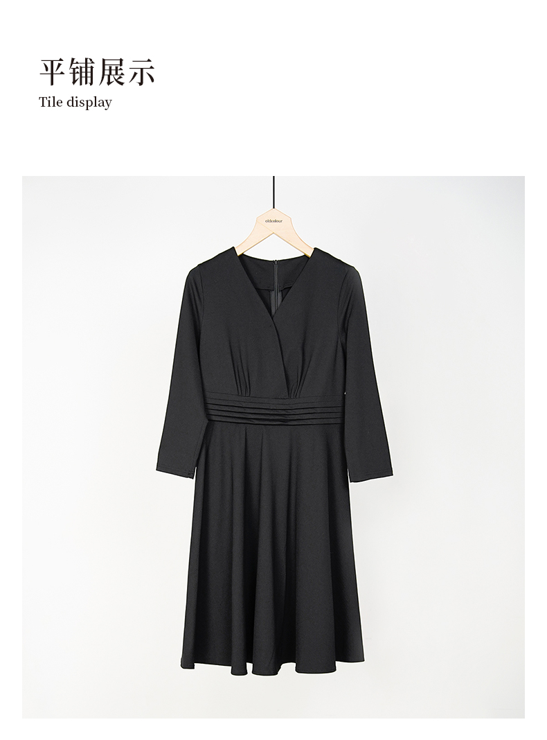 oldcolour春秋款黑色简约优雅通勤V领长袖连衣裙GL32103859
