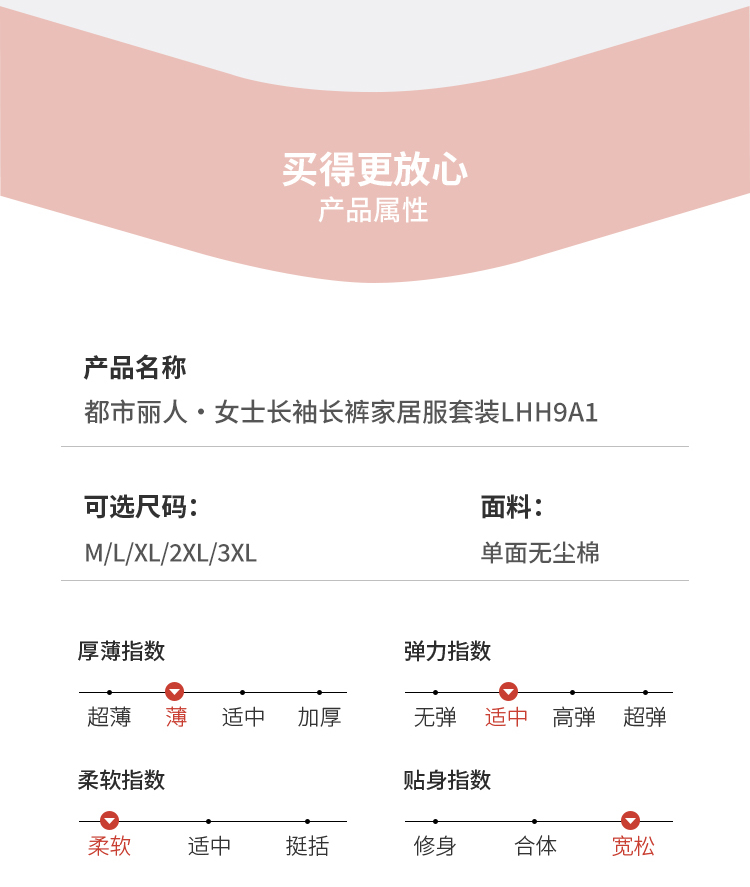 【代言人同款】都市丽人女士无尘棉长袖套装薄单面无尘棉亲情蜜语无长袖类LHH9A1
