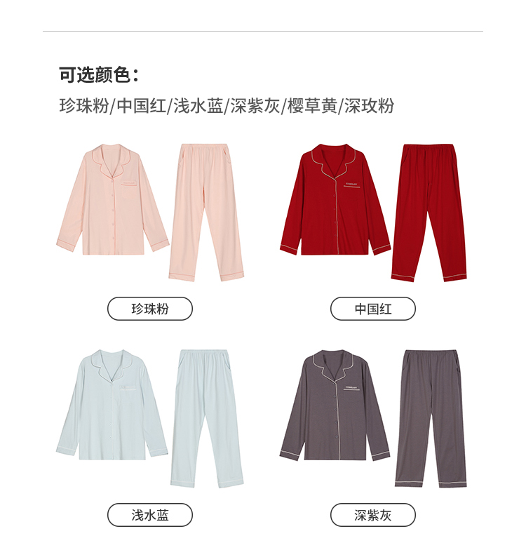 笔笔同款都市丽人双面无尘棉抗静电不易粘毛女士薄款长袖长裤类家居服套装新年本命年红品LH39A2
