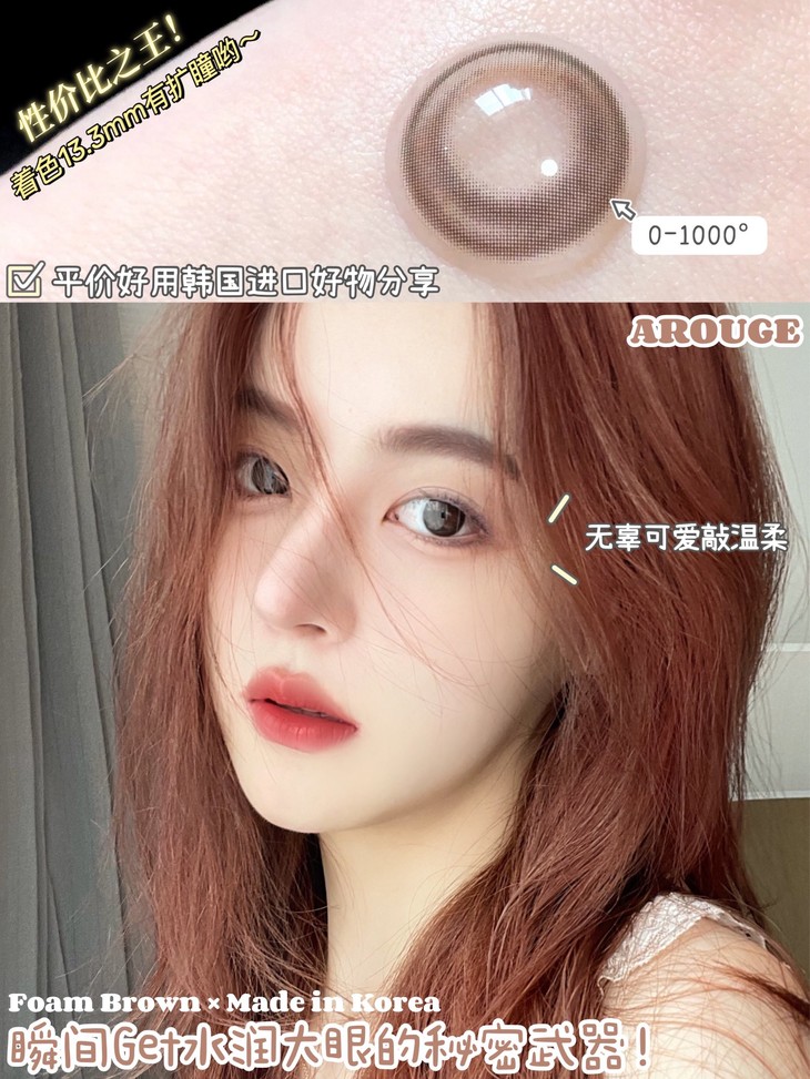 【小红书推荐款】arouge 杏仁泡泡,半年抛/直径14.2/着色13.3, 138/一副,238/两副(商品详情任选,最高度数有1000,3月28号结束)