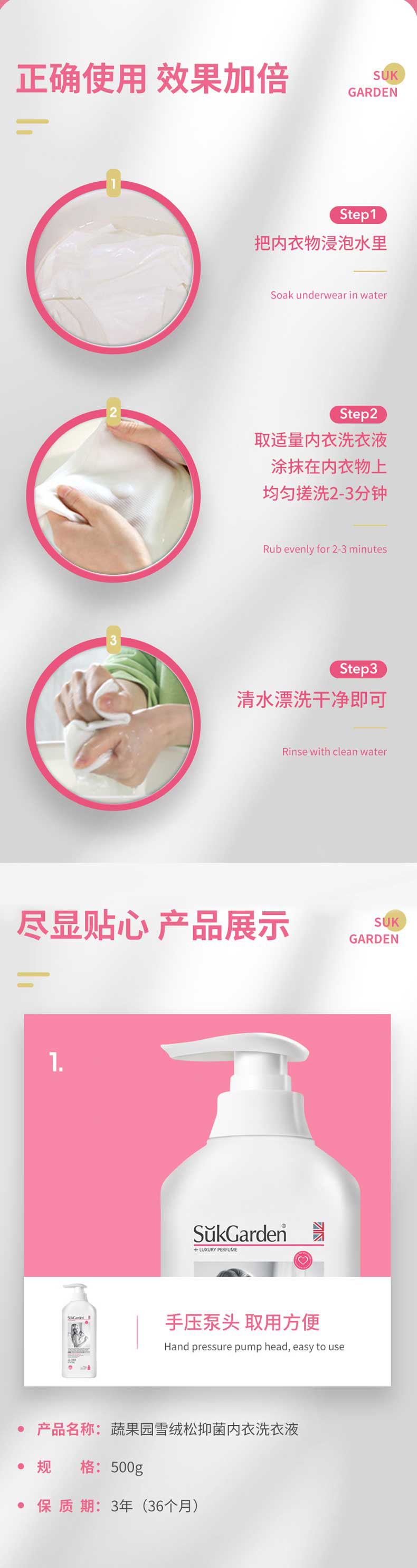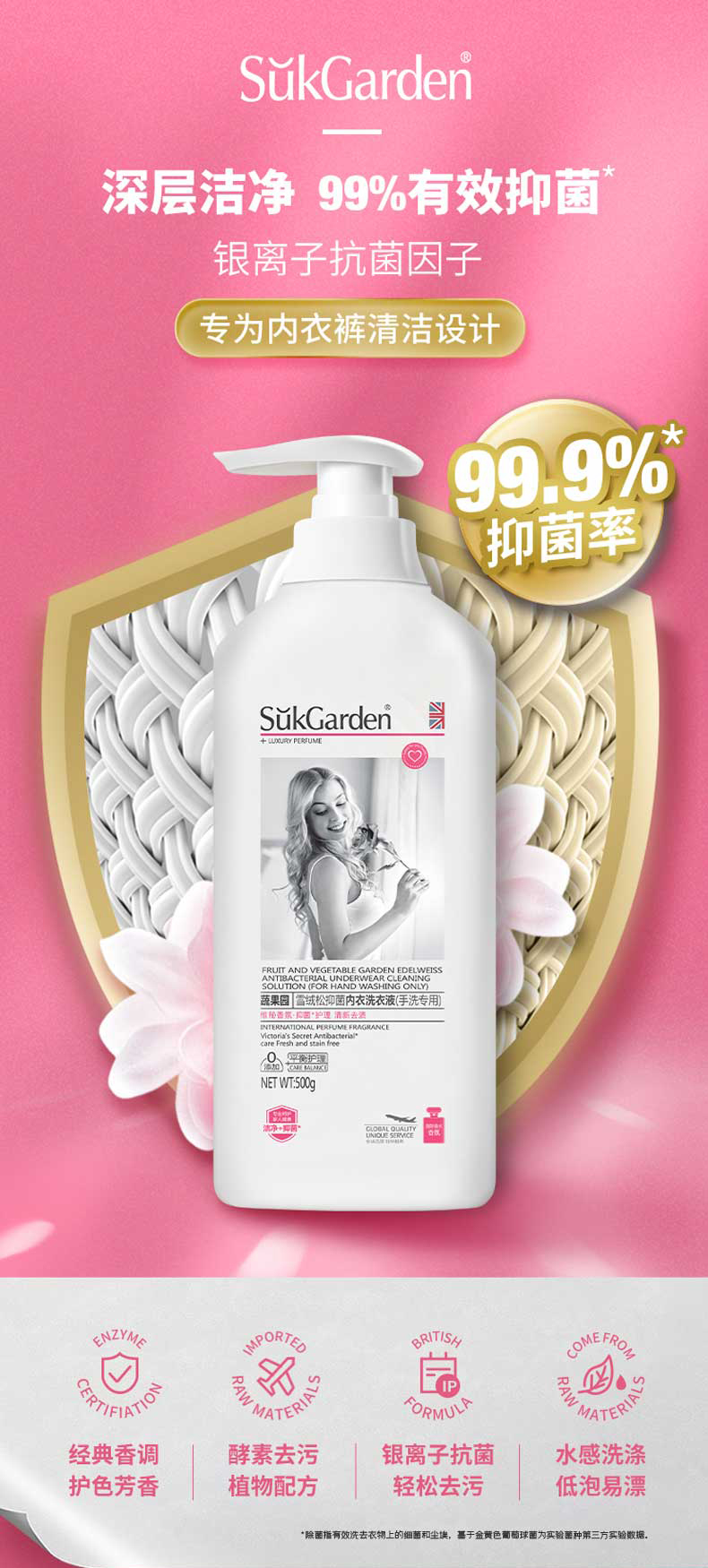 蔬果园雪绒松内衣洗衣液500g 中性配方不伤肤 洁净除异味