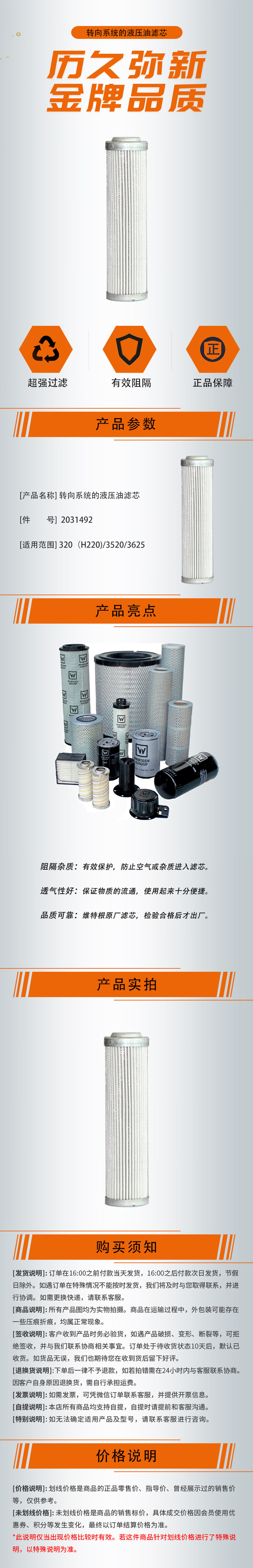 【转向系统的液压油滤芯2031492】 适用于320(H220)/3520/3625