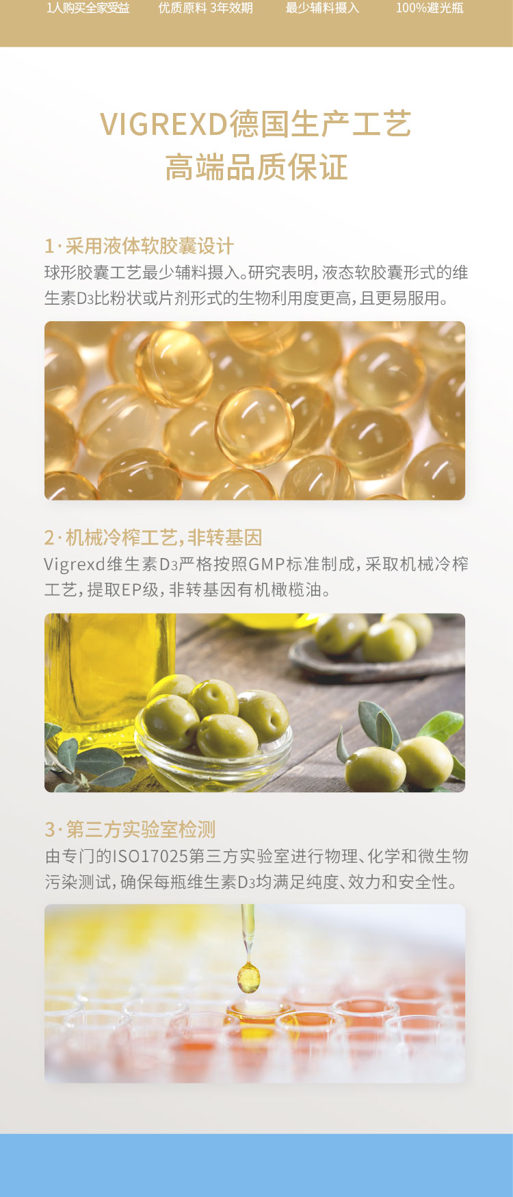 德国进口VIGREXD维骨蒂 成年维生素D3 2000IU软胶囊200粒