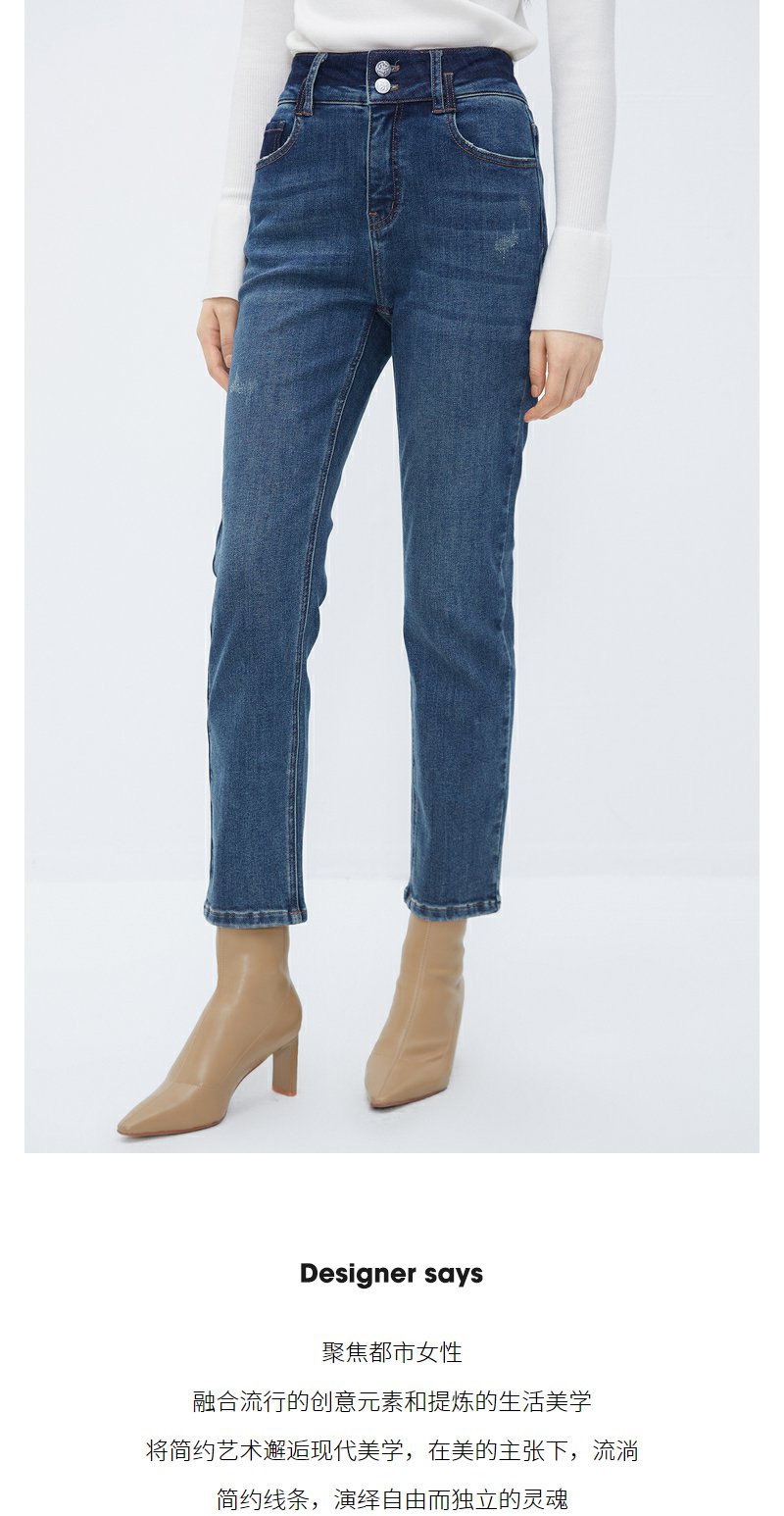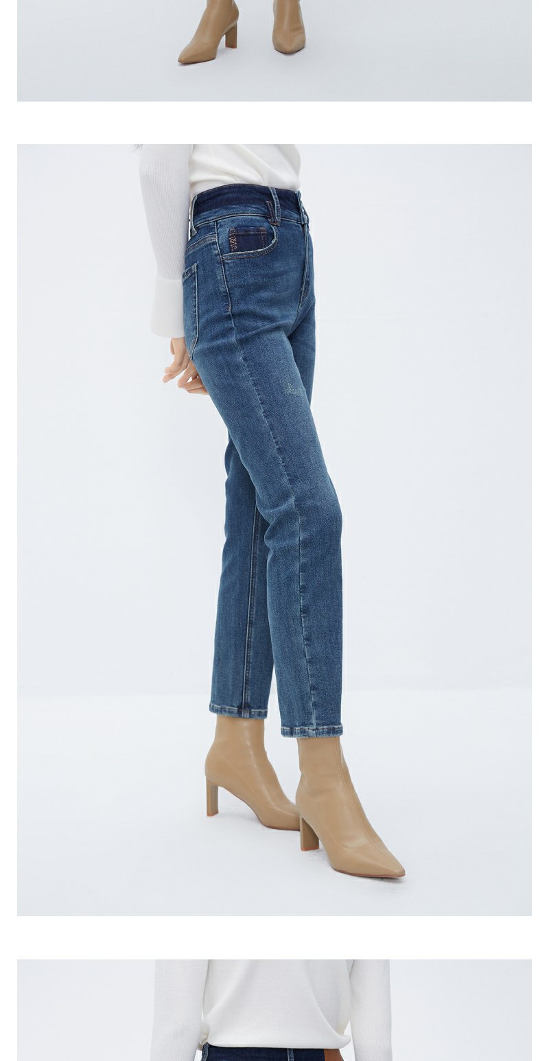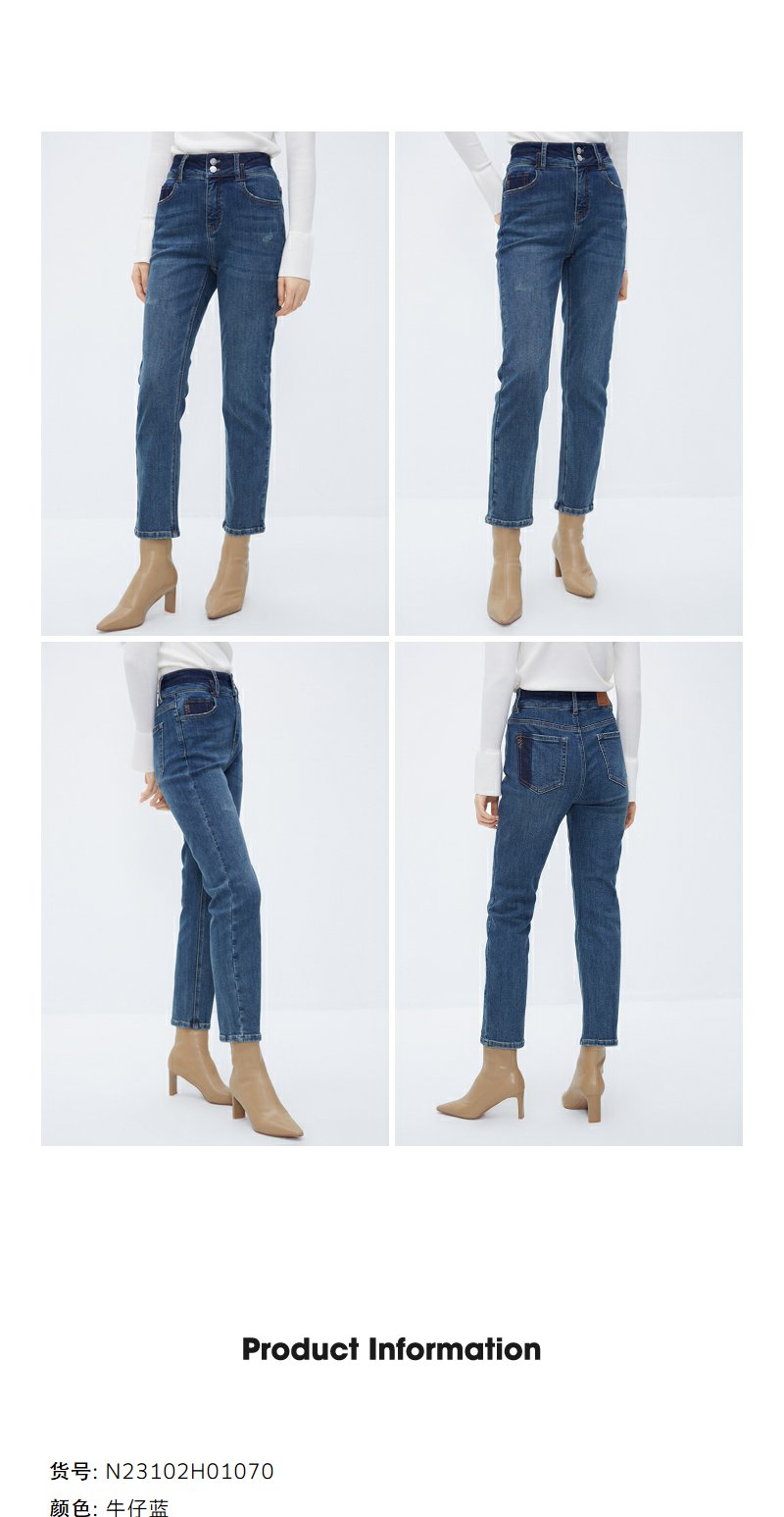 NEELLY纳俪商场同款牛仔蓝直筒裤女显高显瘦百搭弹力棉复古烟管裤N24104H04564