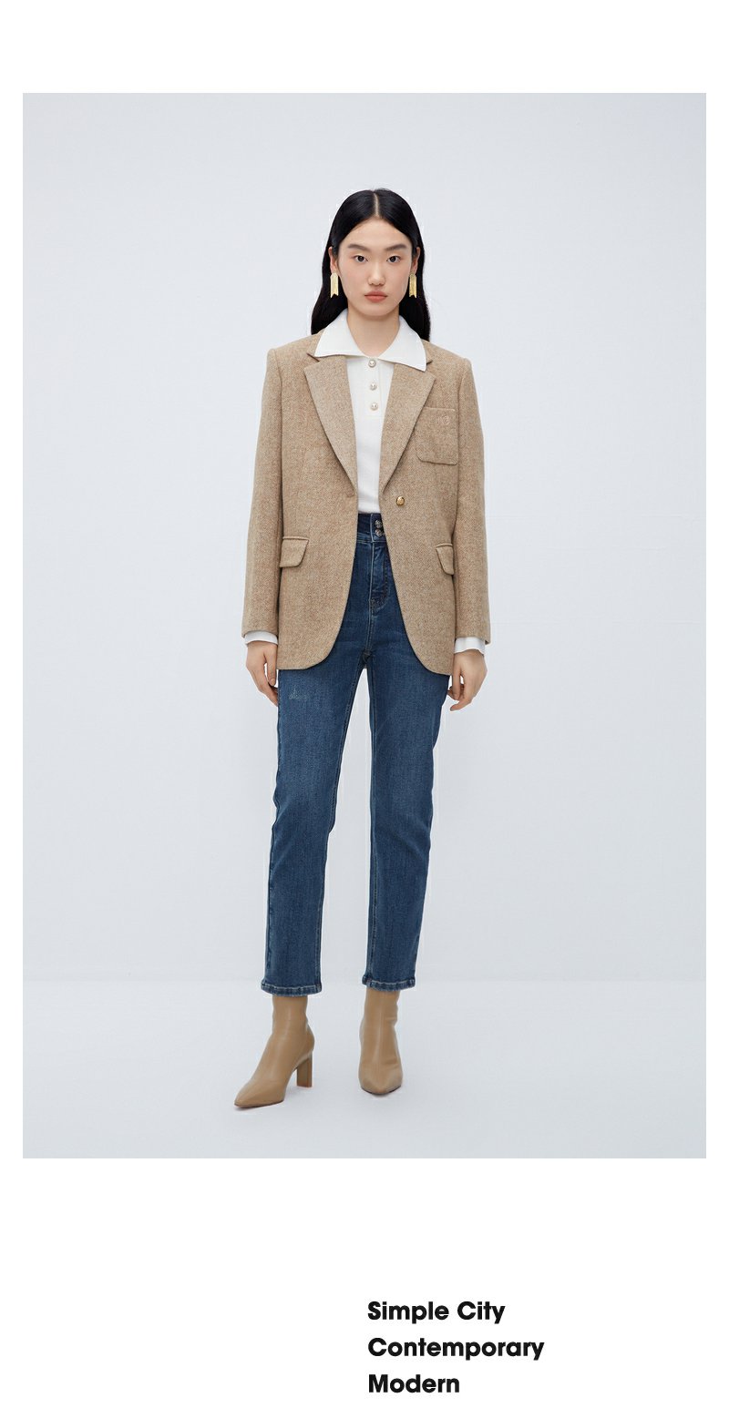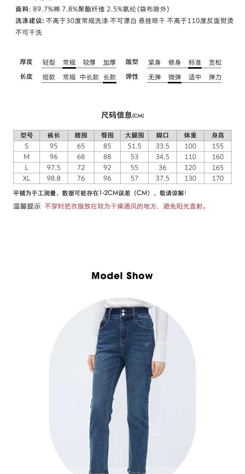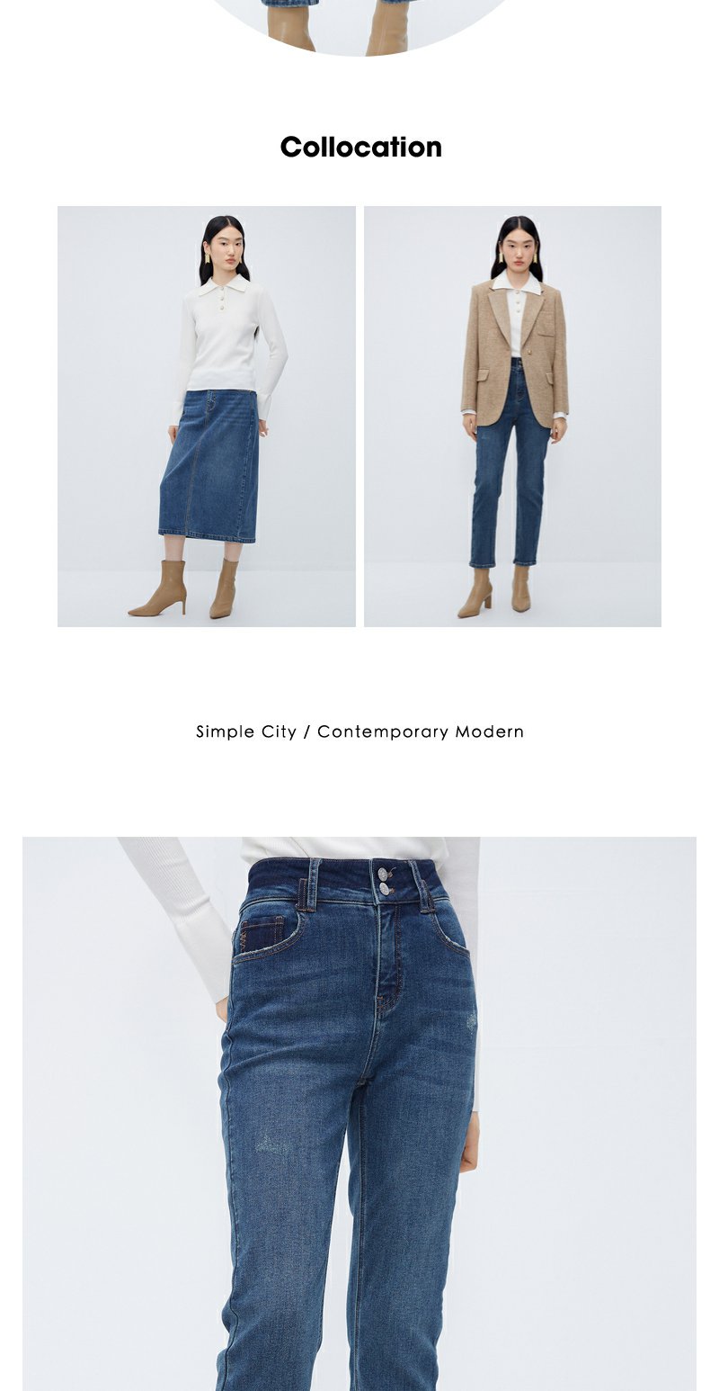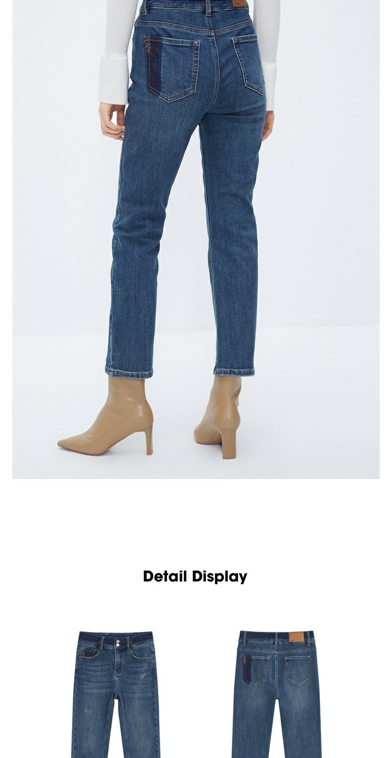 NEELLY纳俪商场同款牛仔蓝直筒裤女显高显瘦百搭弹力棉复古烟管裤N24104H04564
