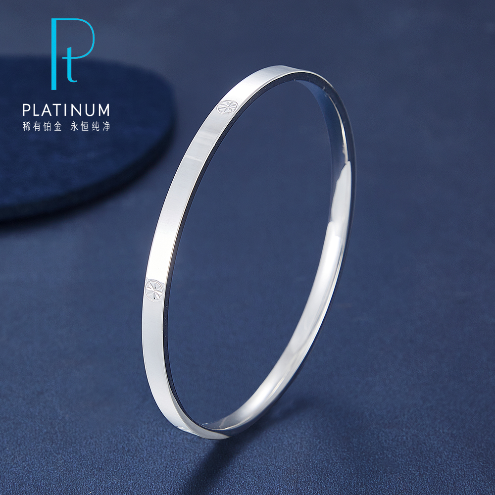 【限时8.8折】【线上铂金馆】PT950 【国际铂金协会】铂金空心(面宽约3.6-4mm)光面米字车花螺丝纹固口手镯(BSZ00089)(预售4-7天发货,一经下单不支持退款)