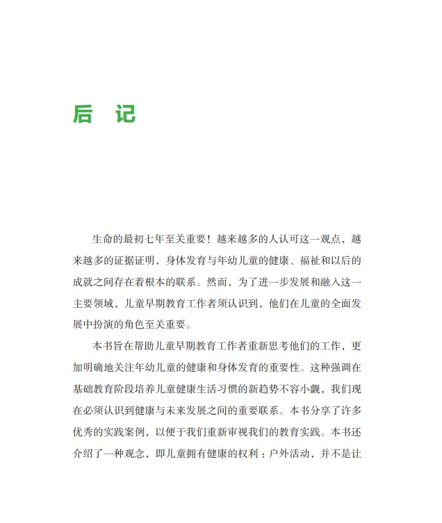 ◆更明确地关注年幼儿童的身体发育与其未来健康、幸福的重要联系;