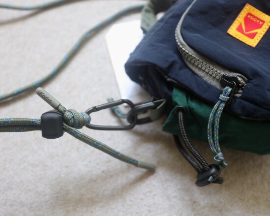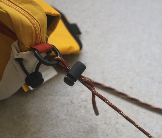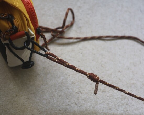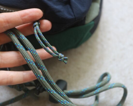 按住黑色卡扣 就能抽出来了 别打开伞绳上的编结 你要是会编也无所谓 哈~