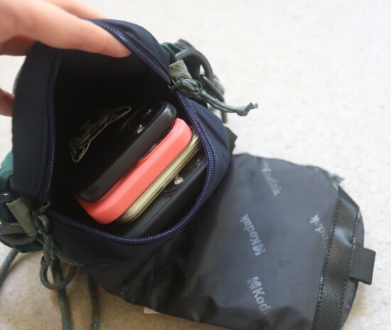 主袋 可竖着进4个果P手机 两侧还有点余量 横着只能进一个