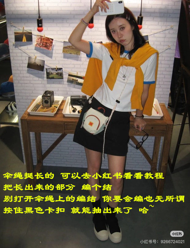 伞绳挺长的 可以去小红书看看教程 把长出来的部分 编个结