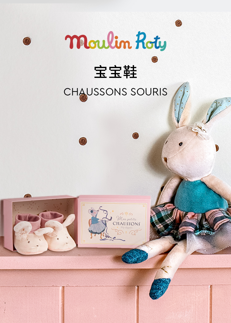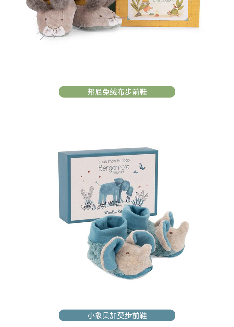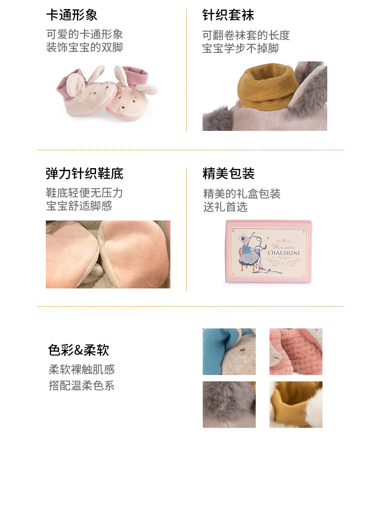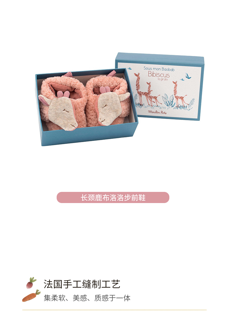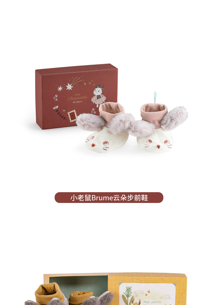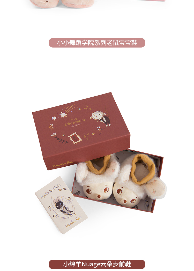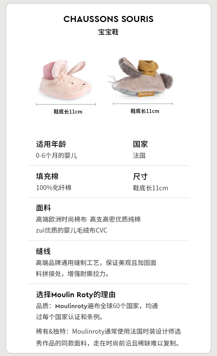 法国 Moulin Roty 宝宝鞋(礼盒装)适合0-6月龄 鞋长11cm 卡通形象 针织袜套