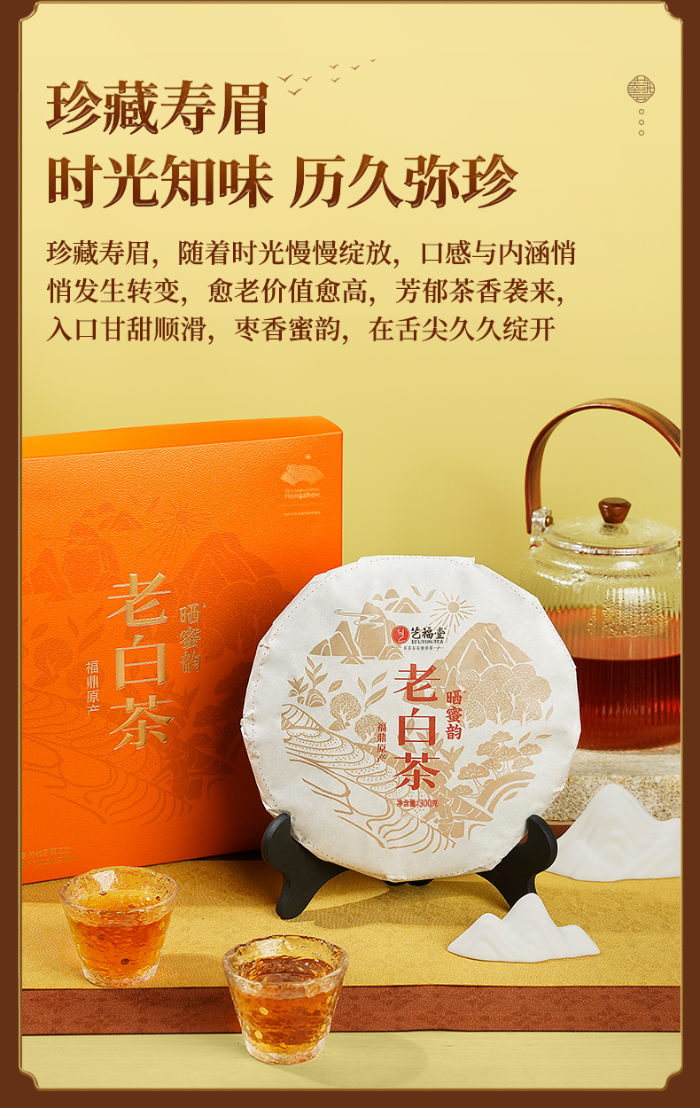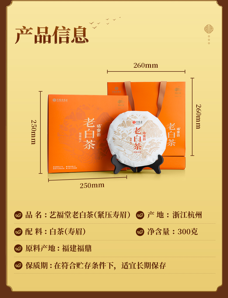 【第2件半价】艺福堂 茶叶 礼盒装 晒蜜韵福鼎原产 枣香 陈年 2017年寿眉老白茶 300g