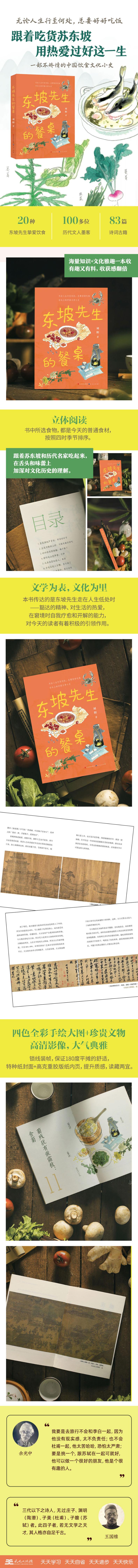 全书以苏轼饮食诗词为线索,四季时节为序列,串连起苏轼一生的行迹、生平,从饮食这个有趣的视角一探东坡对生活的热爱和对人生的豁达。作者熟稔中国饮食历史、历朝文人诗词作品,将更多与主题相关的诗词、历史、文化融入到文章中,细数饮食风物的由来与发展,与苏轼的文学作品相互辉映,满足阅读中群文阅读、类比阅读的需求。是一本以苏轼为起点的文化盛宴,也是一部舌尖上的中国文学与饮食文化小史。