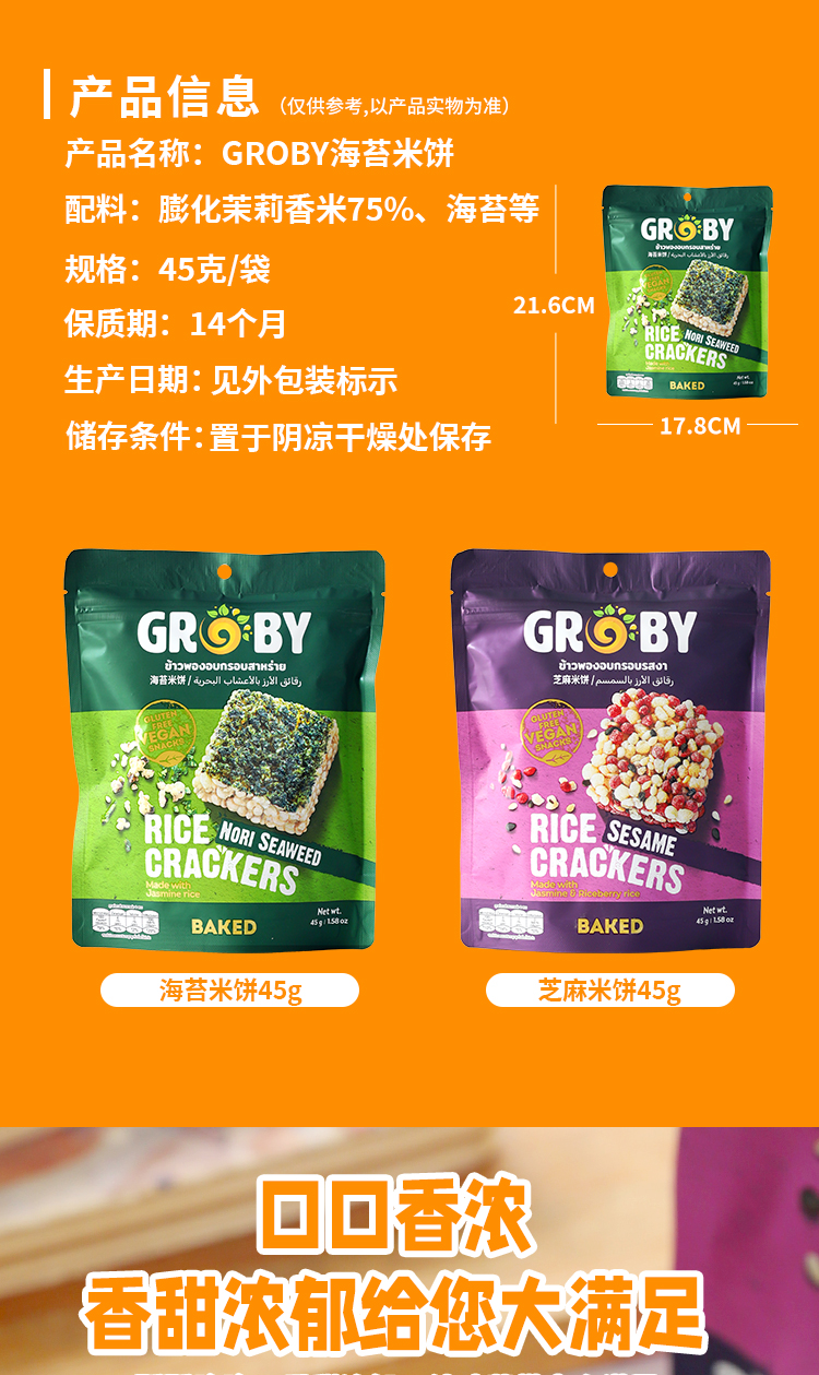 GROBY海苔米饼/芝麻米饼45g 浓郁美味唇齿留香 059468/059467
