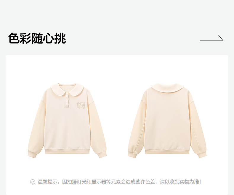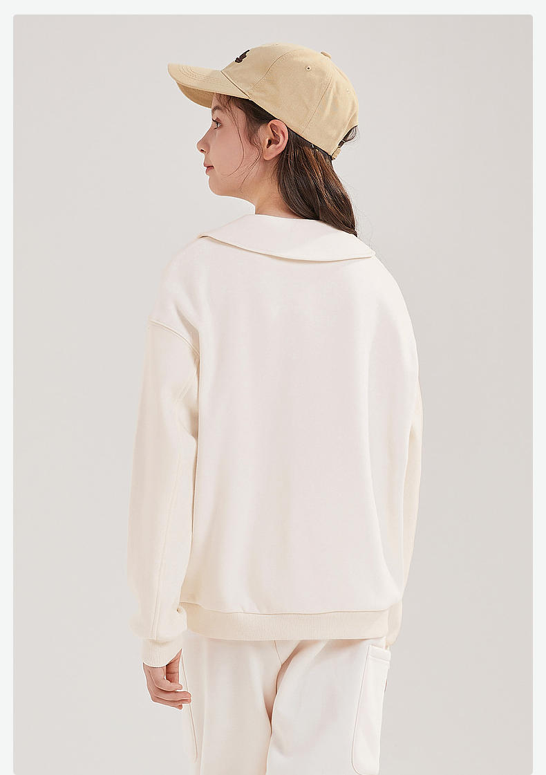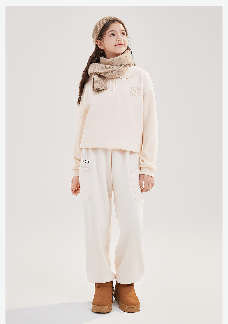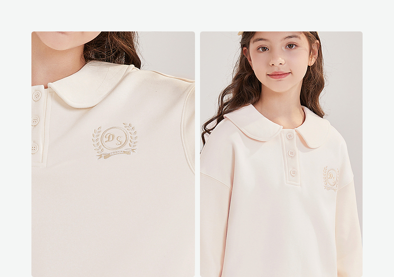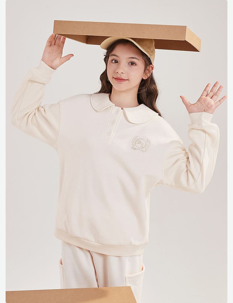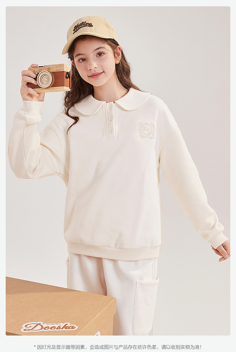 笛莎Deesha青少年女童卫衣2024冬季新款复古学院风翻领卫衣