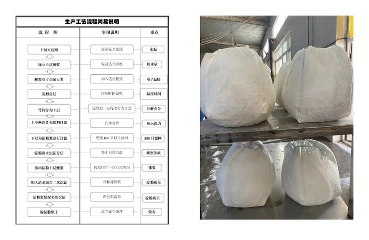 酸浆法是一种通过加入自然发酵的酸浆(含有乳酸乳球菌)使淀粉沉降的传统生产方法。它需要经历清洗浸泡、捞豆、筛分、粗淀粉乳、沉淀、再次沉淀、再次筛分等十多道工序完成。绿豆淀粉加工出来的粉丝品质最高,主要体现在粉丝的烹饪损失、抗拉强度、耐剪切强度和耐煮性等方面。