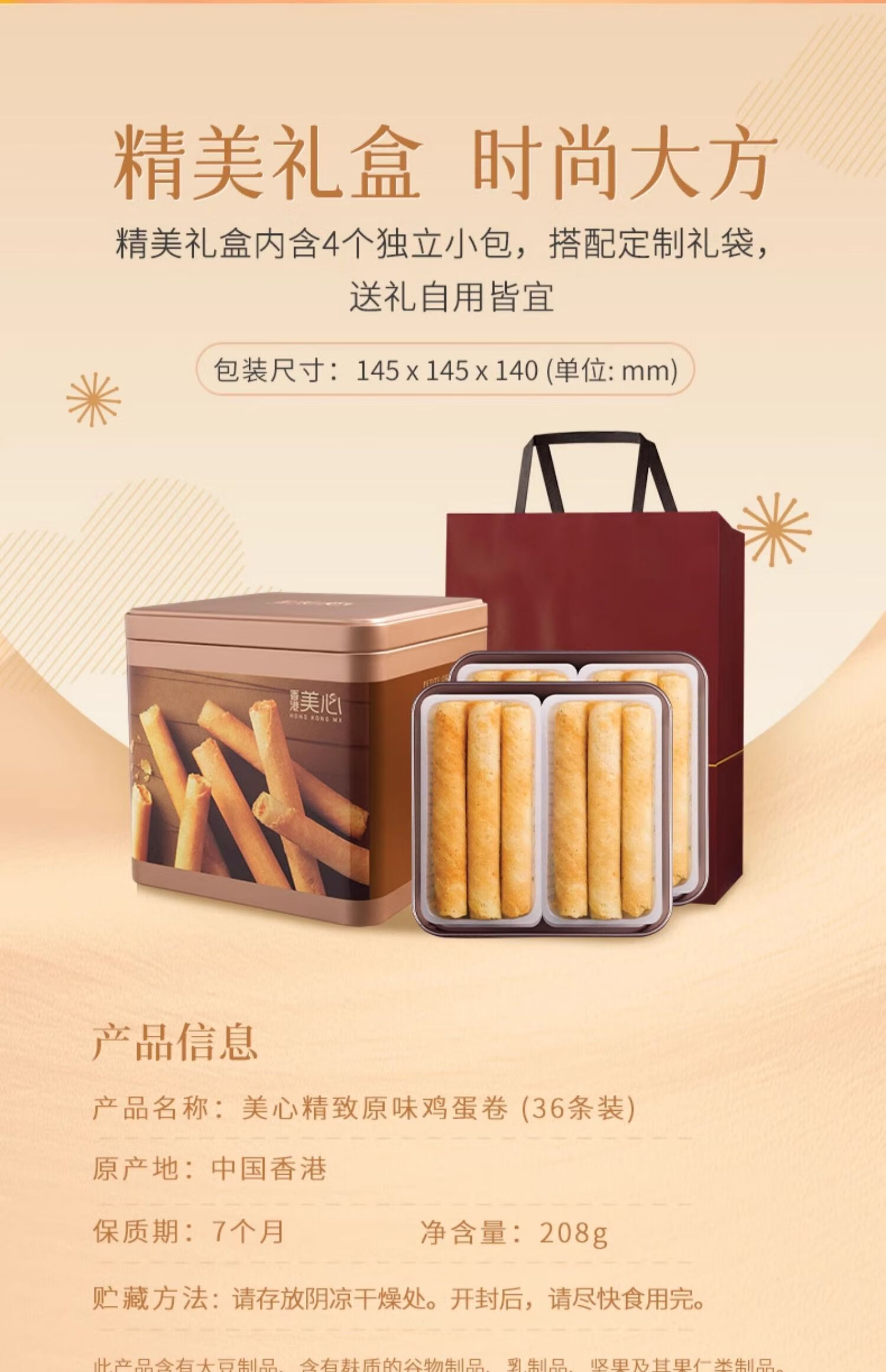 美心精致原味鸡蛋卷208g/盒