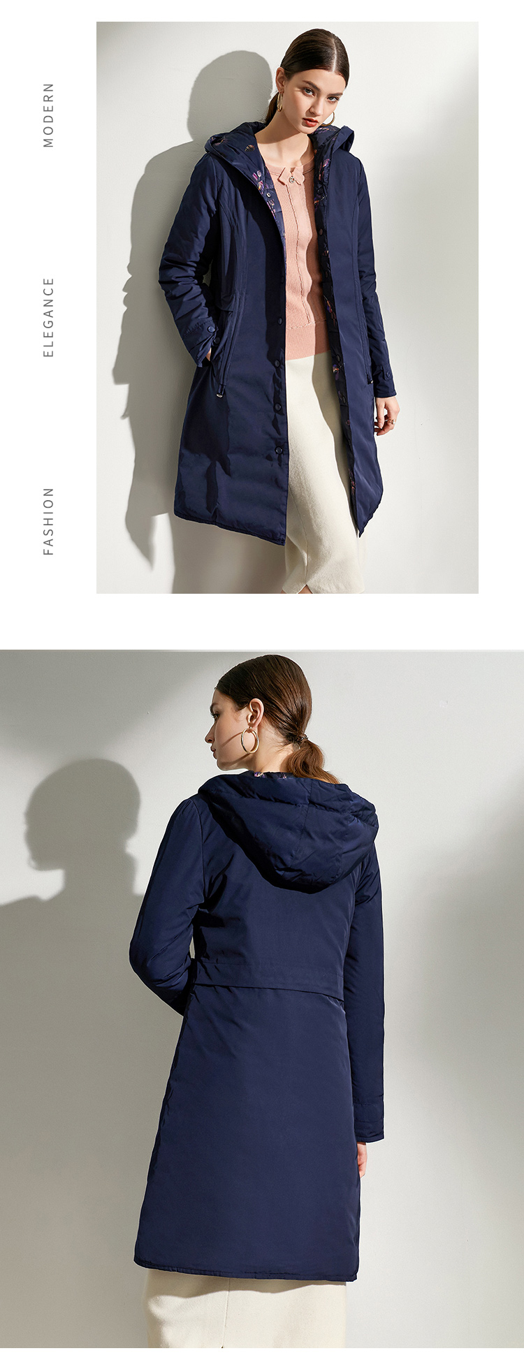 佐尔美2021冬季新款上新 双面穿时尚经典羽绒服外套女E04YY10