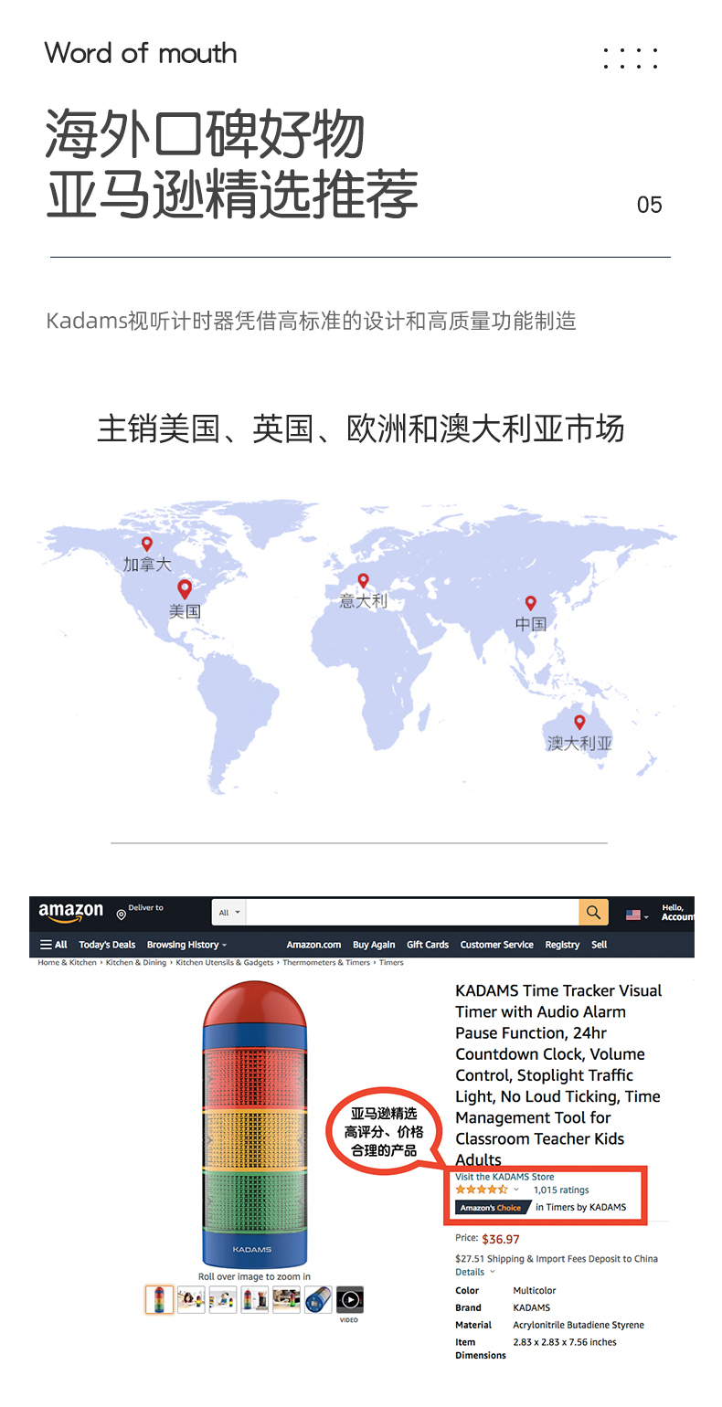 【亚马逊海外口碑榜|时间管理神器】Kadams儿童时间管理可视化计时器