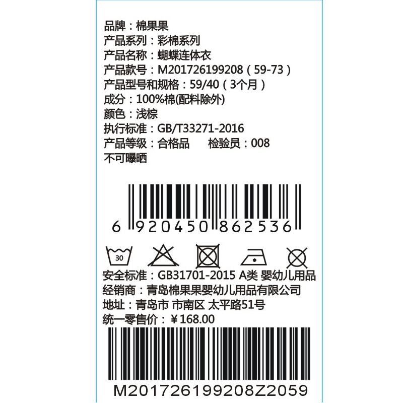 棉果果夏季彩棉纯棉哈衣爬服蝴蝶连体衣M201726199208