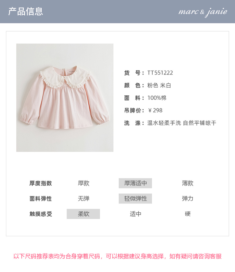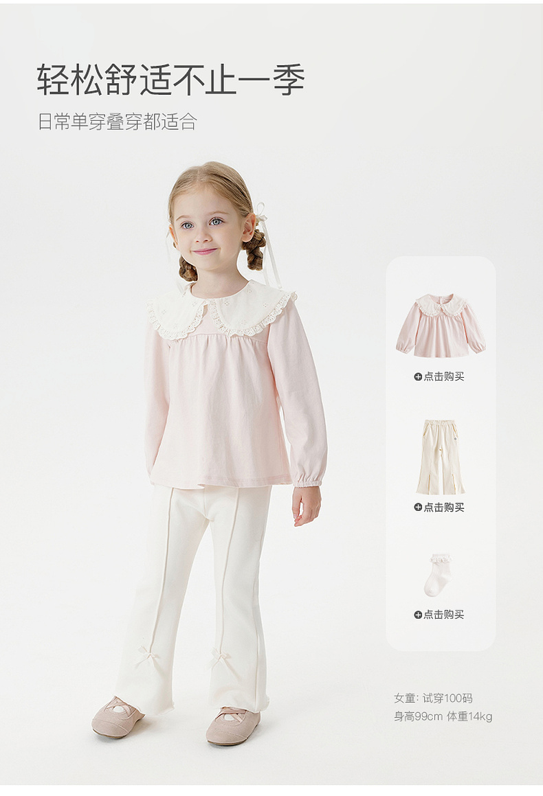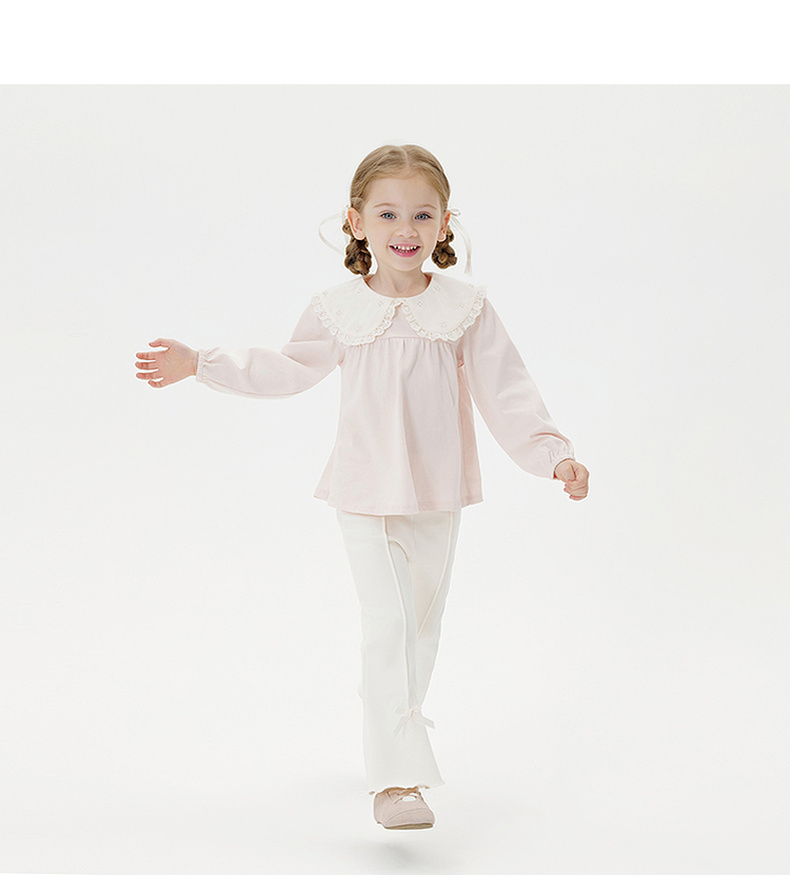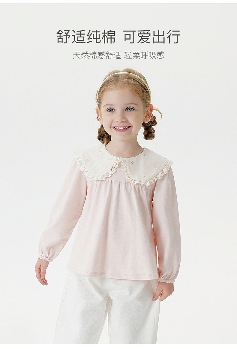 马克珍妮女童舒适娃娃领长袖T恤 宝宝纯棉打底衫秋装新品551222