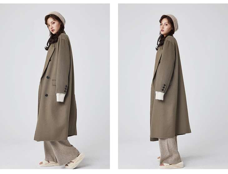 麻衣森活||法式慵懒风,双排扣中长款双面尼羊毛大衣