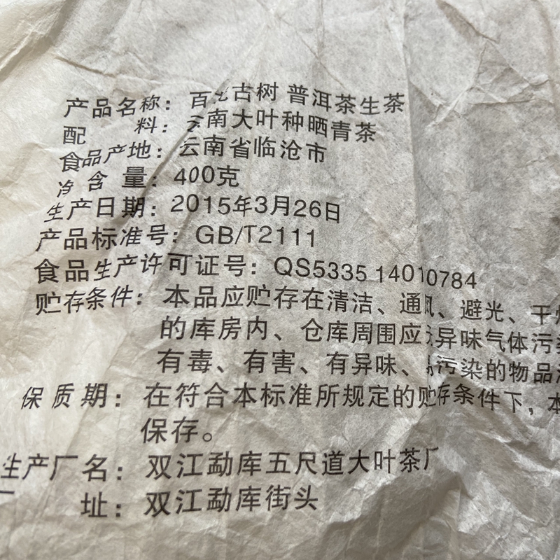 这款茶是2015年制作的400克大饼,至于为啥做400克的而不是357克的,是因为当时那个年代的需要不同,那时候400克的大饼还好卖一点,现在追求的基本都是200克的茶饼了。