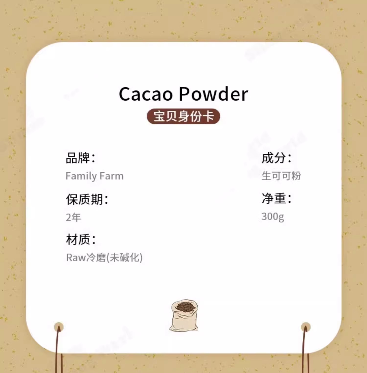Family Farm Cacao未碱化生可可粉 可可脂 生可可塊(黑巧) 麦片 酸奶碗 生酮 冲饮粉