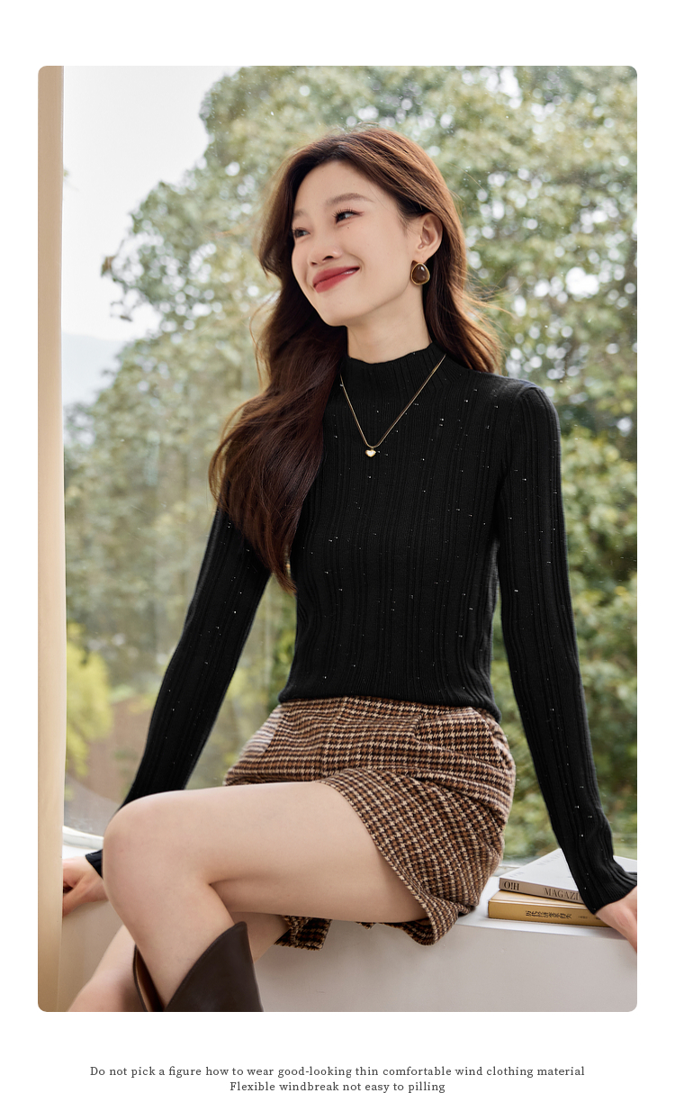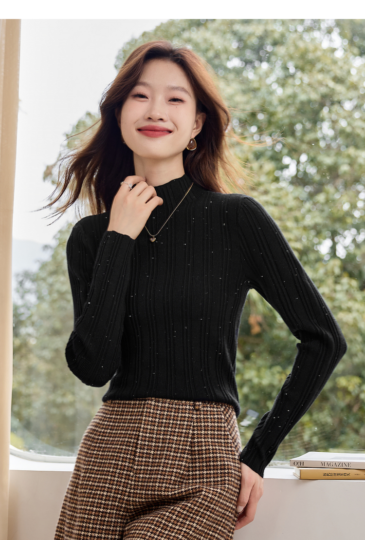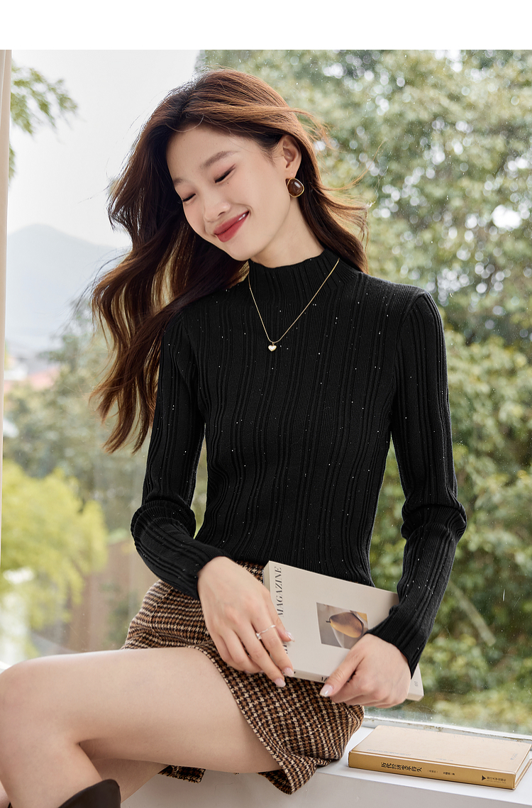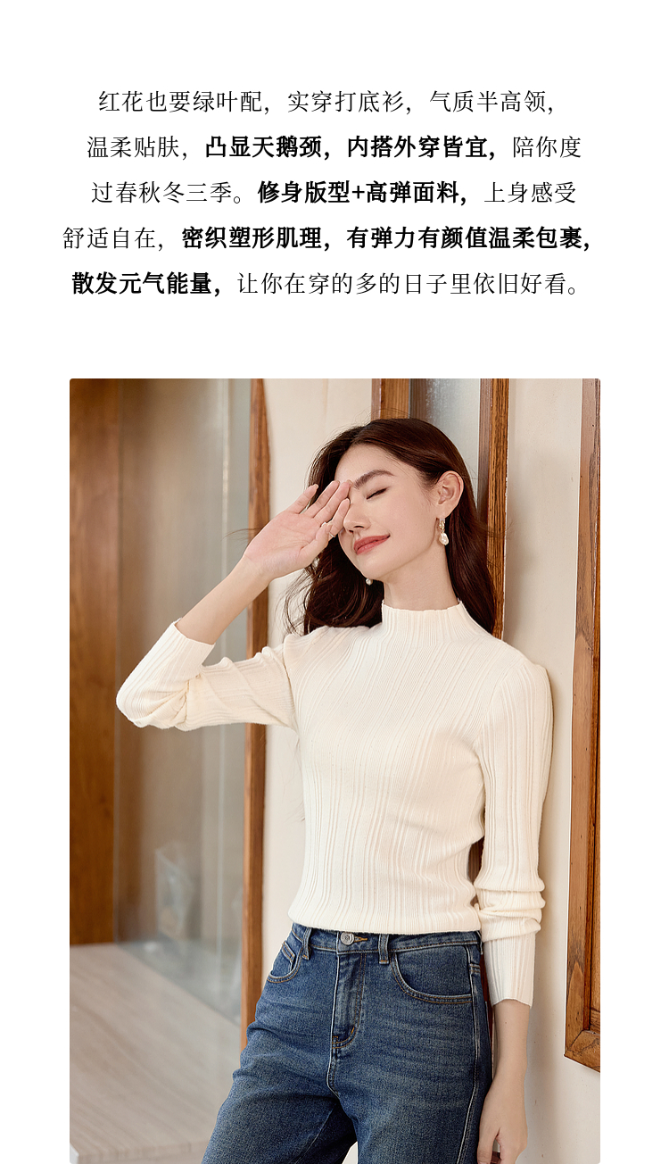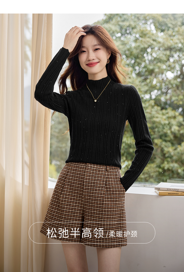 【年终特卖】熙世界半高领针织衫女打底上衣2025秋冬款内搭修身显瘦套头毛衣