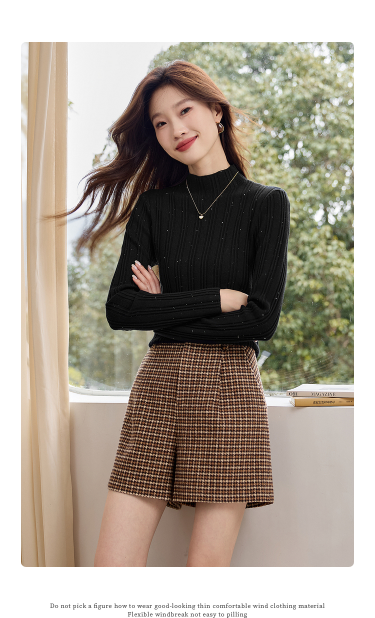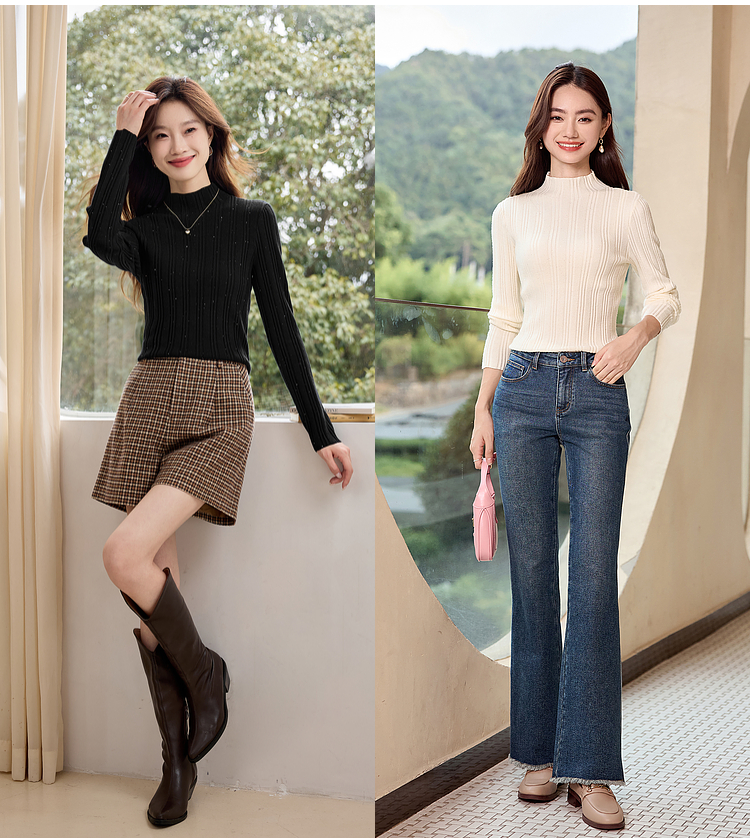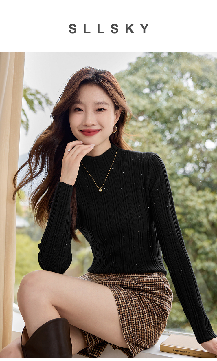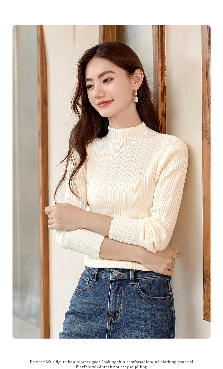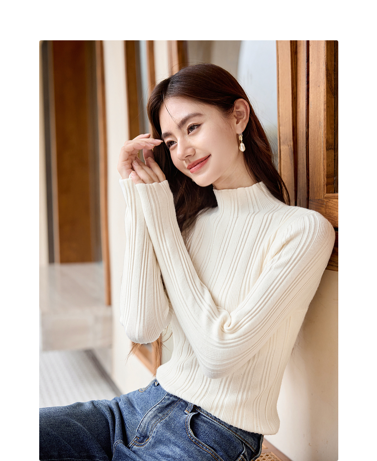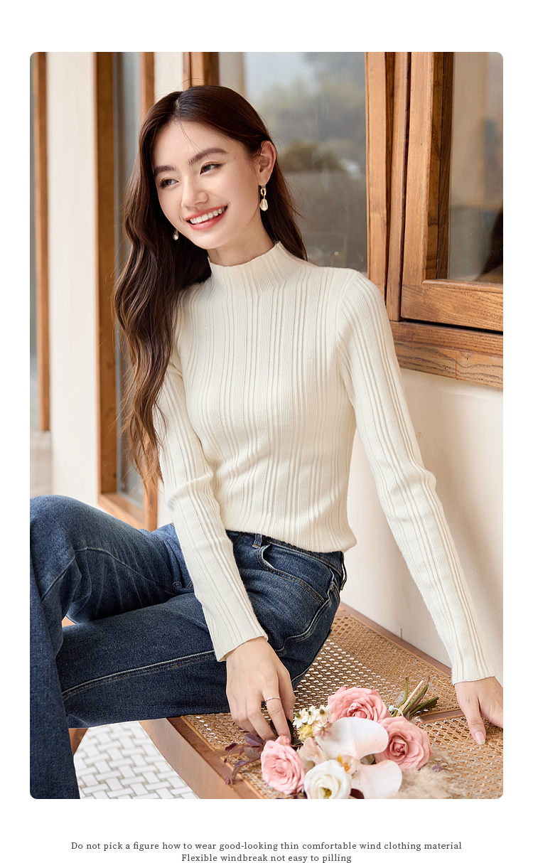【年终特卖】熙世界半高领针织衫女打底上衣2025秋冬款内搭修身显瘦套头毛衣