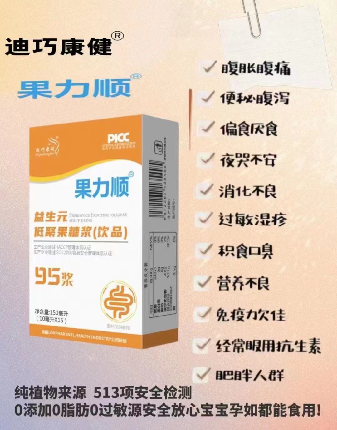 【果力顺】低聚果糖益生元,味道甜甜,宝宝爱喝,虽不是药物和保健品,比药物安全有效,没有依赖性和副作用,更适合宝宝肠道[爱心]