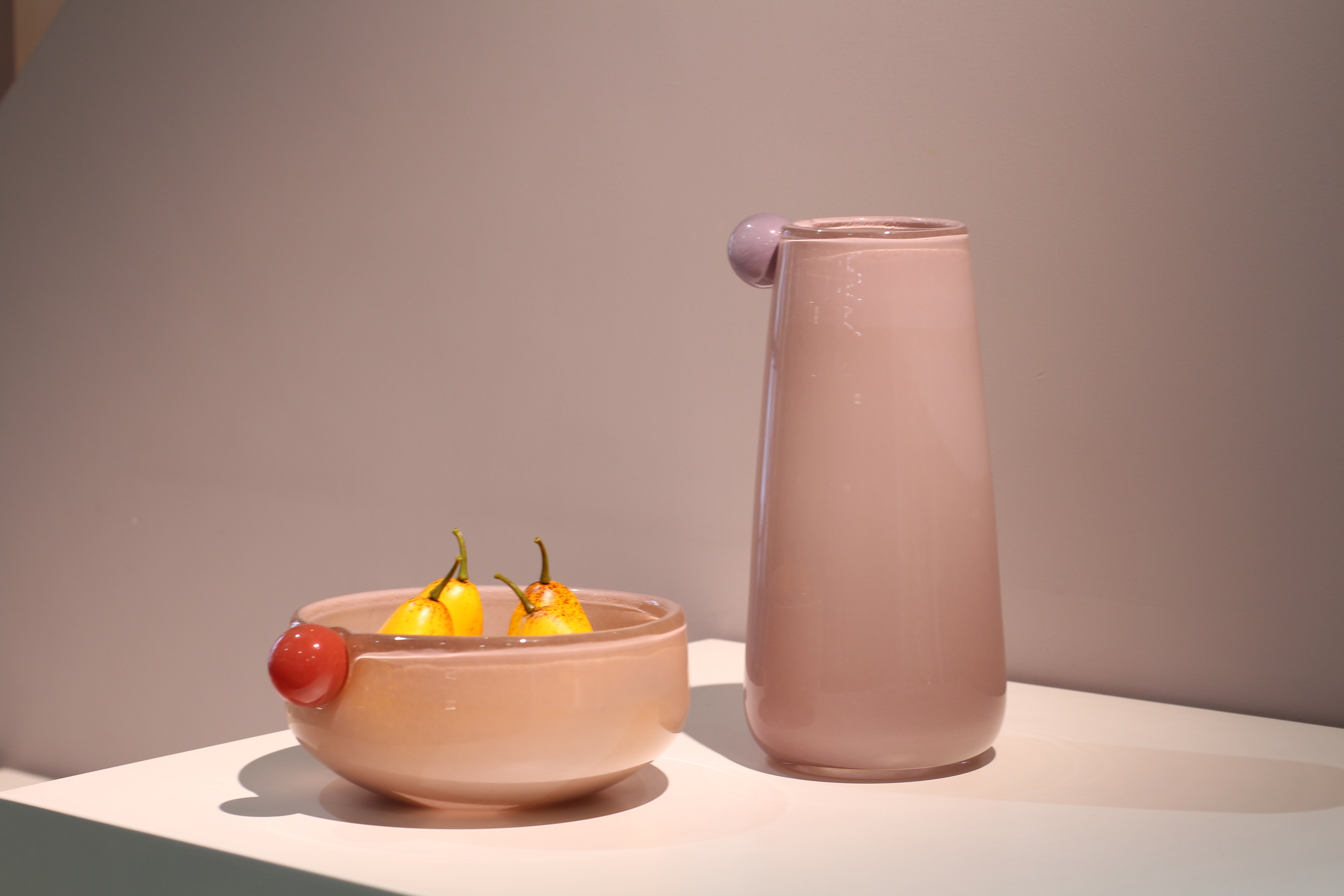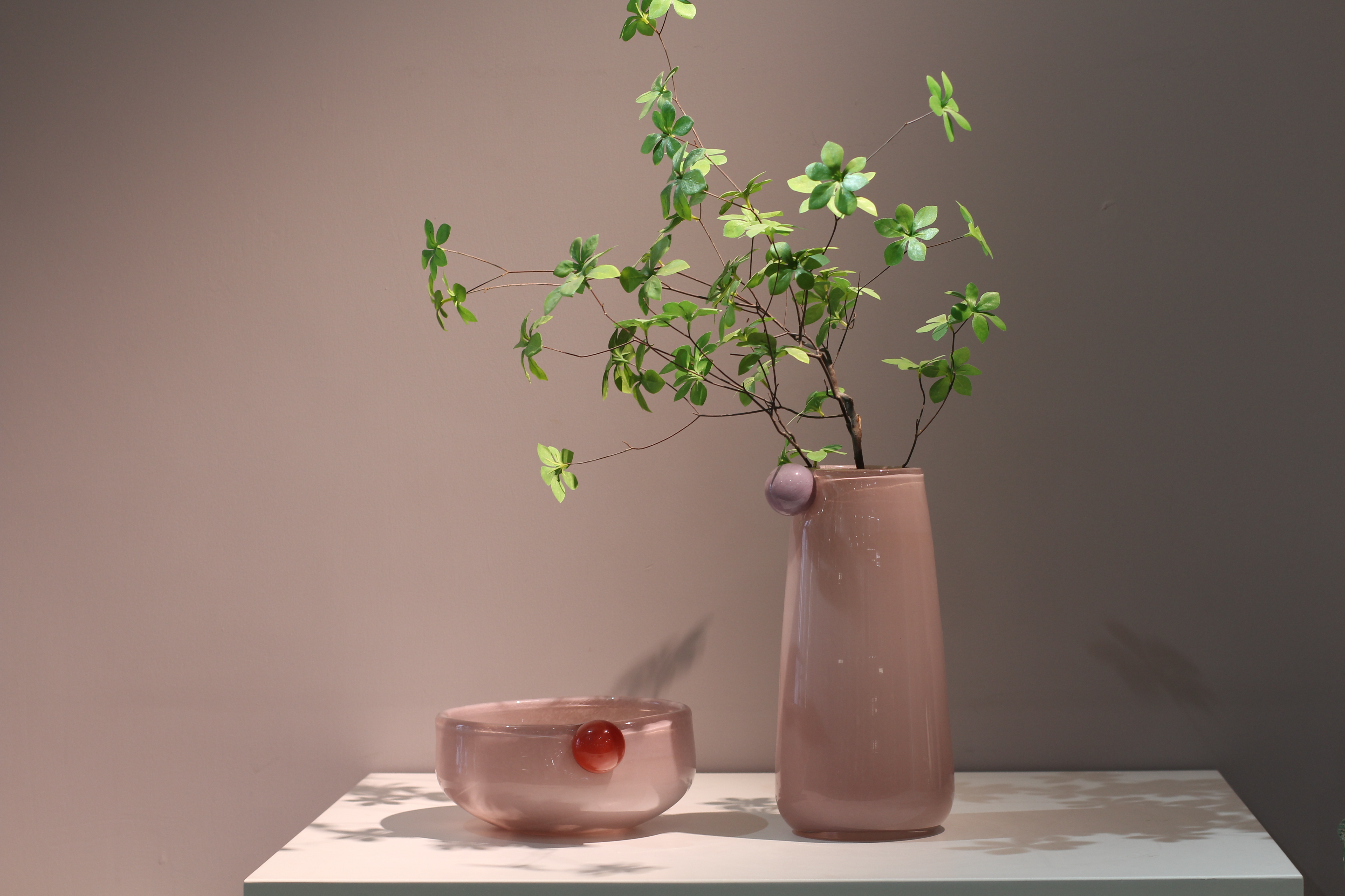 磁粉粉色球球玻璃花瓶花器器皿摆件水果盘