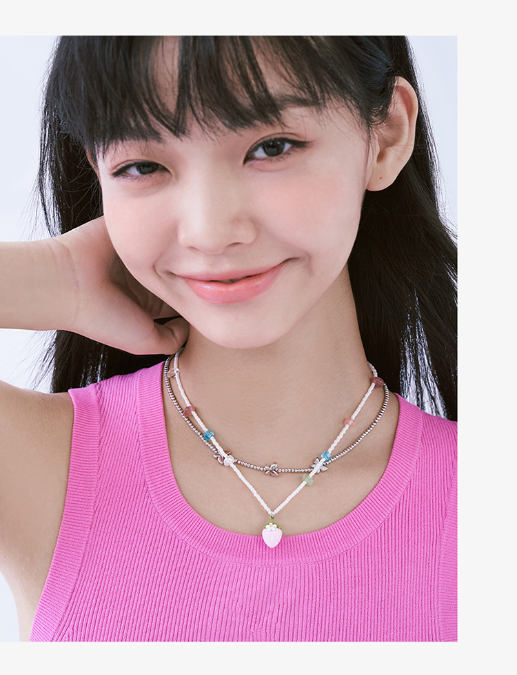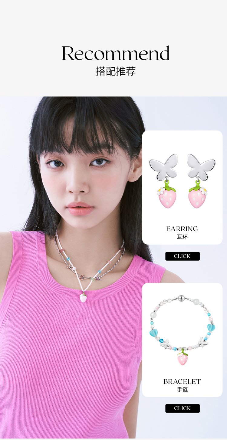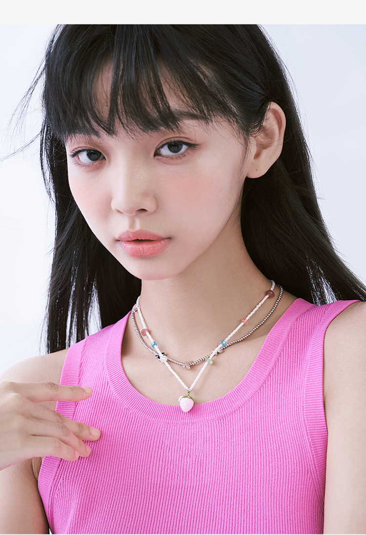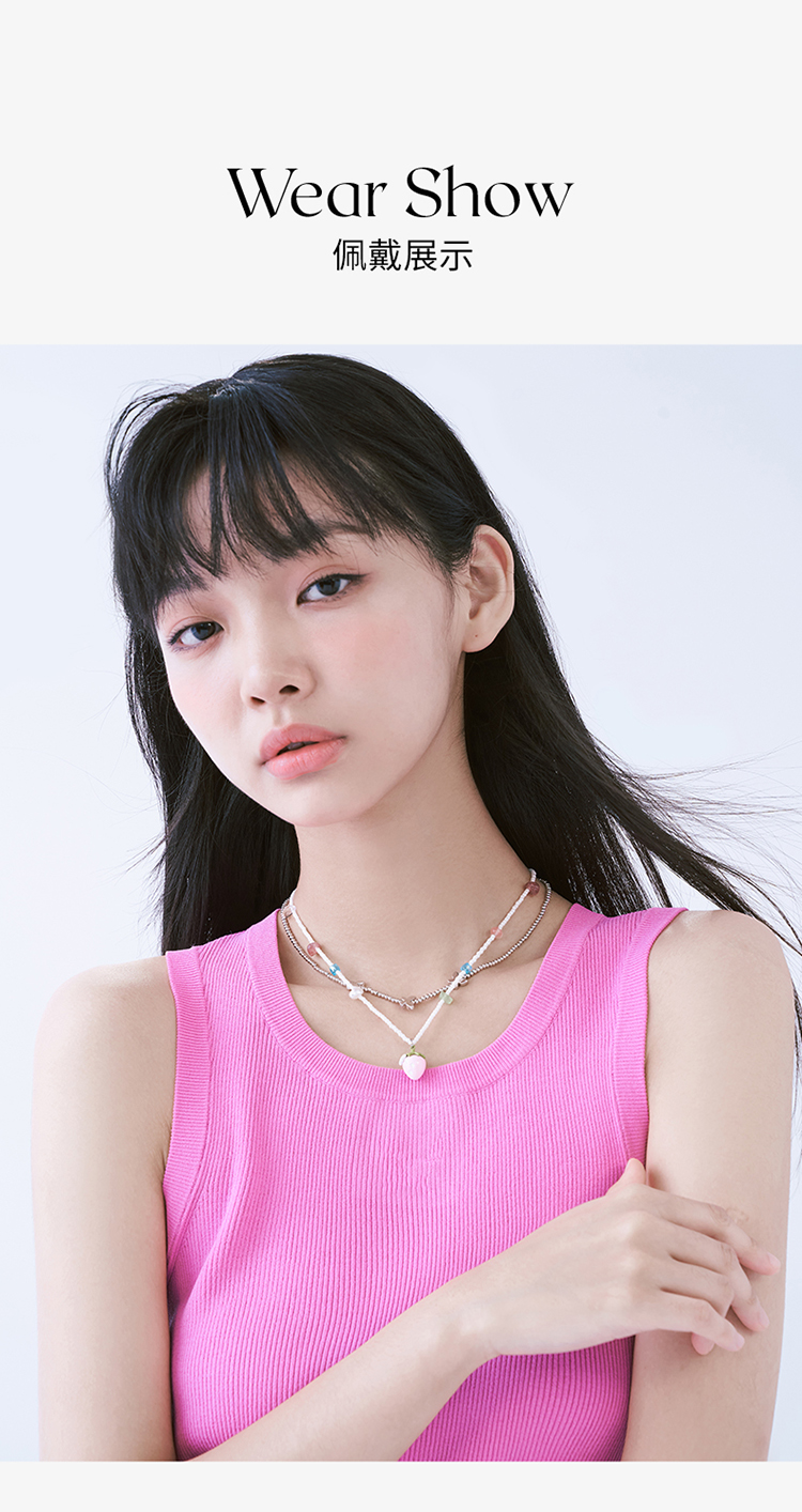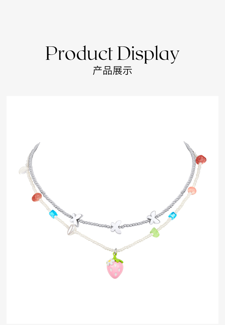ZEGL设计师草莓小彩串彩色串珠项链女轻奢小众甜酷双层叠戴锁骨链