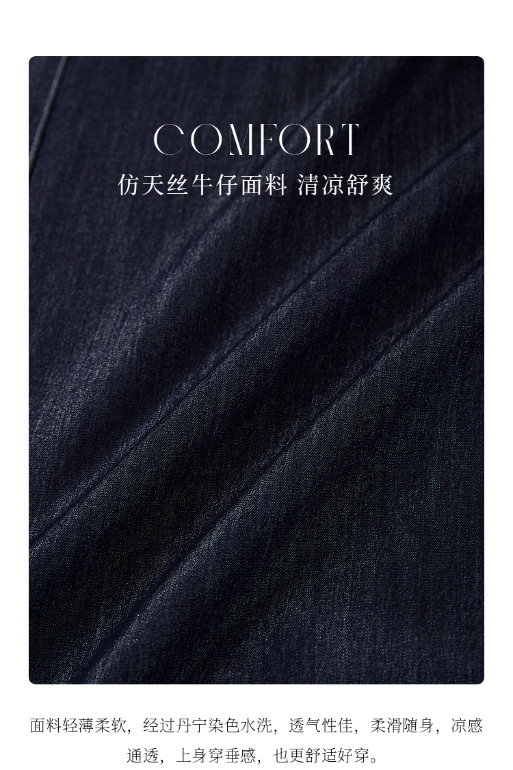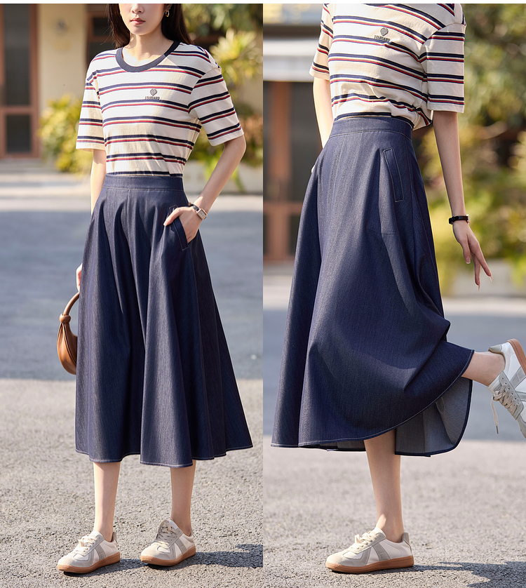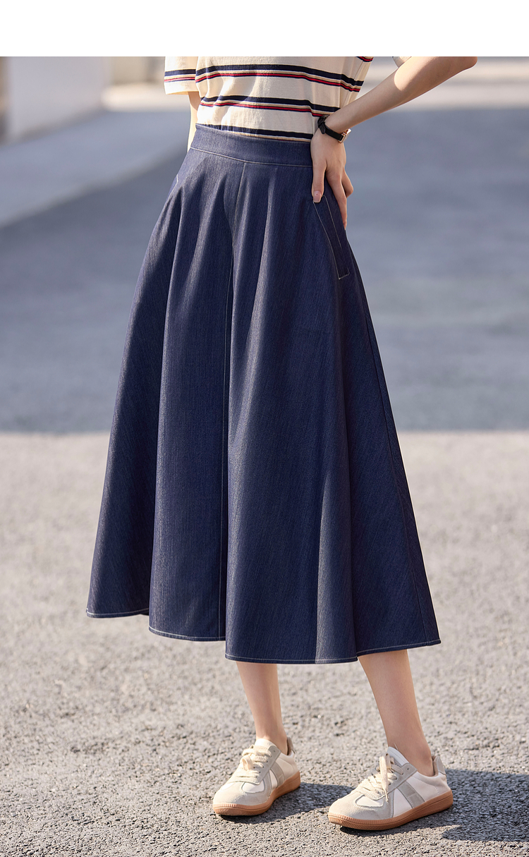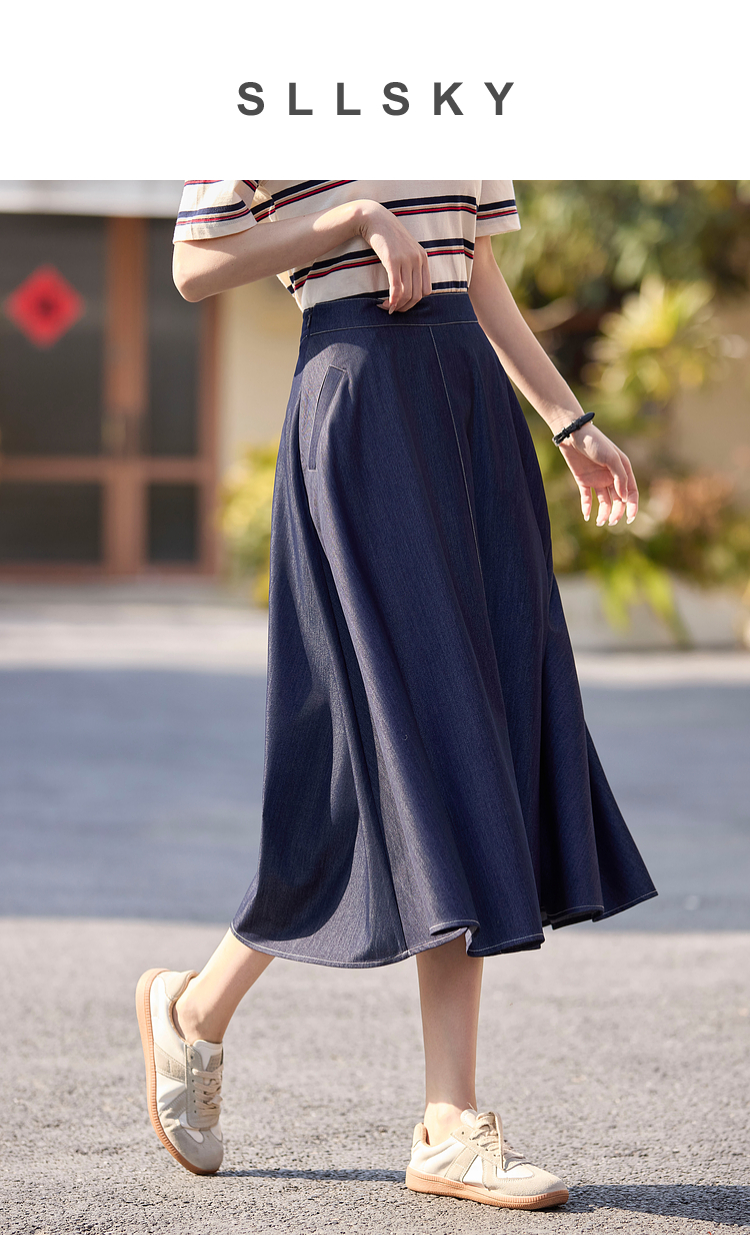 【专属特价】熙世界仿天丝牛仔蓝半身裙女薄款2025年夏季新款高腰显瘦a字伞裙