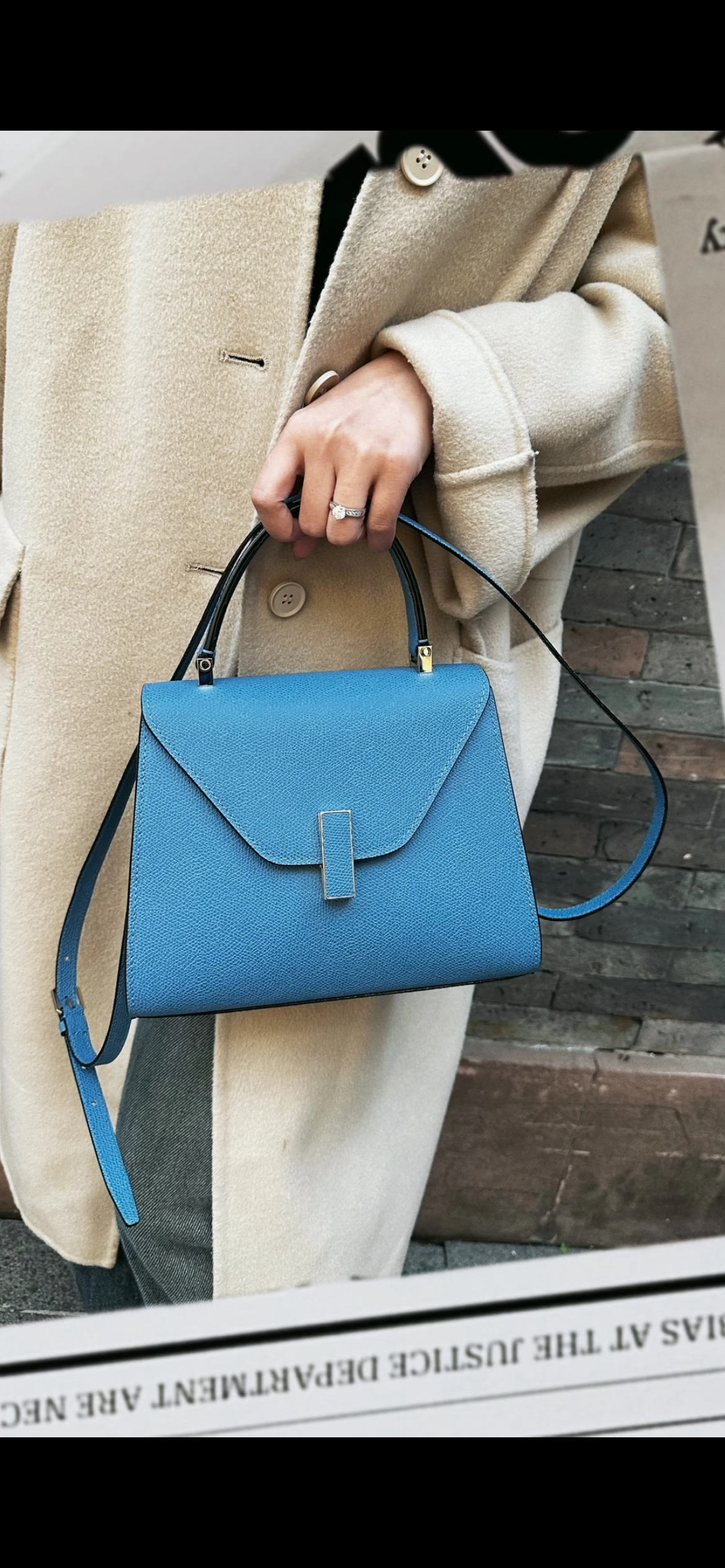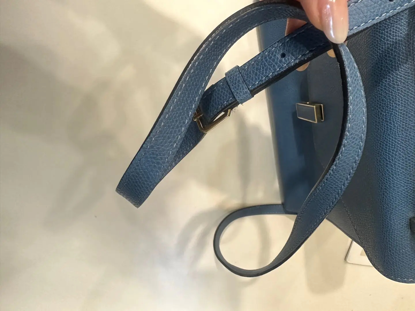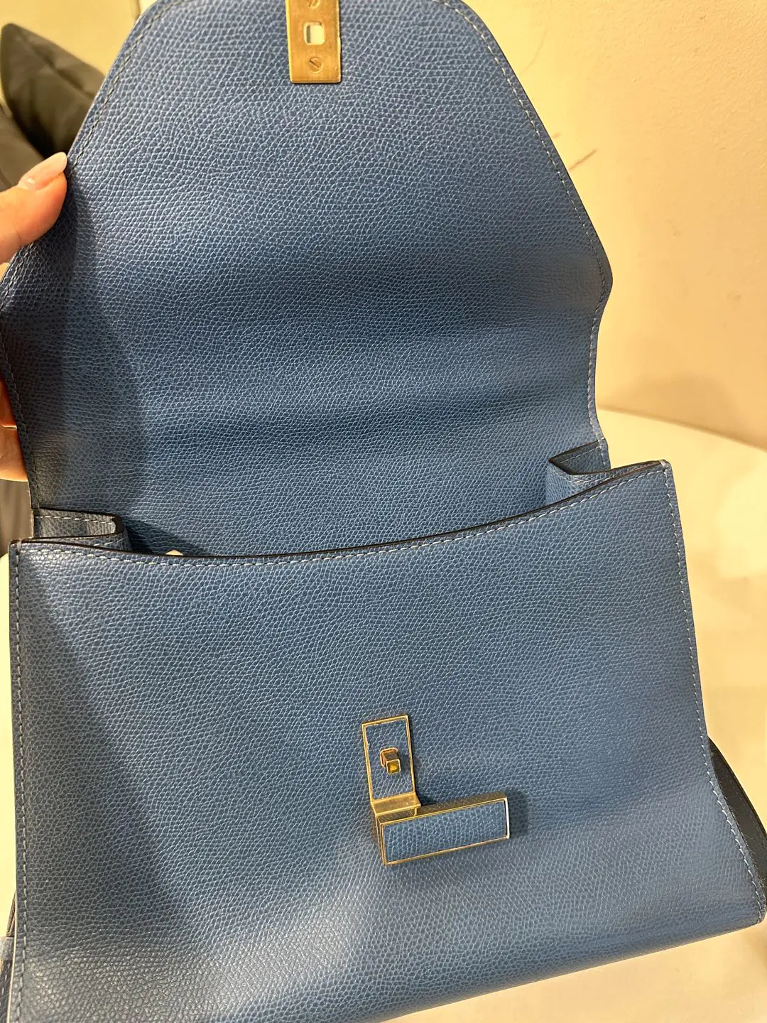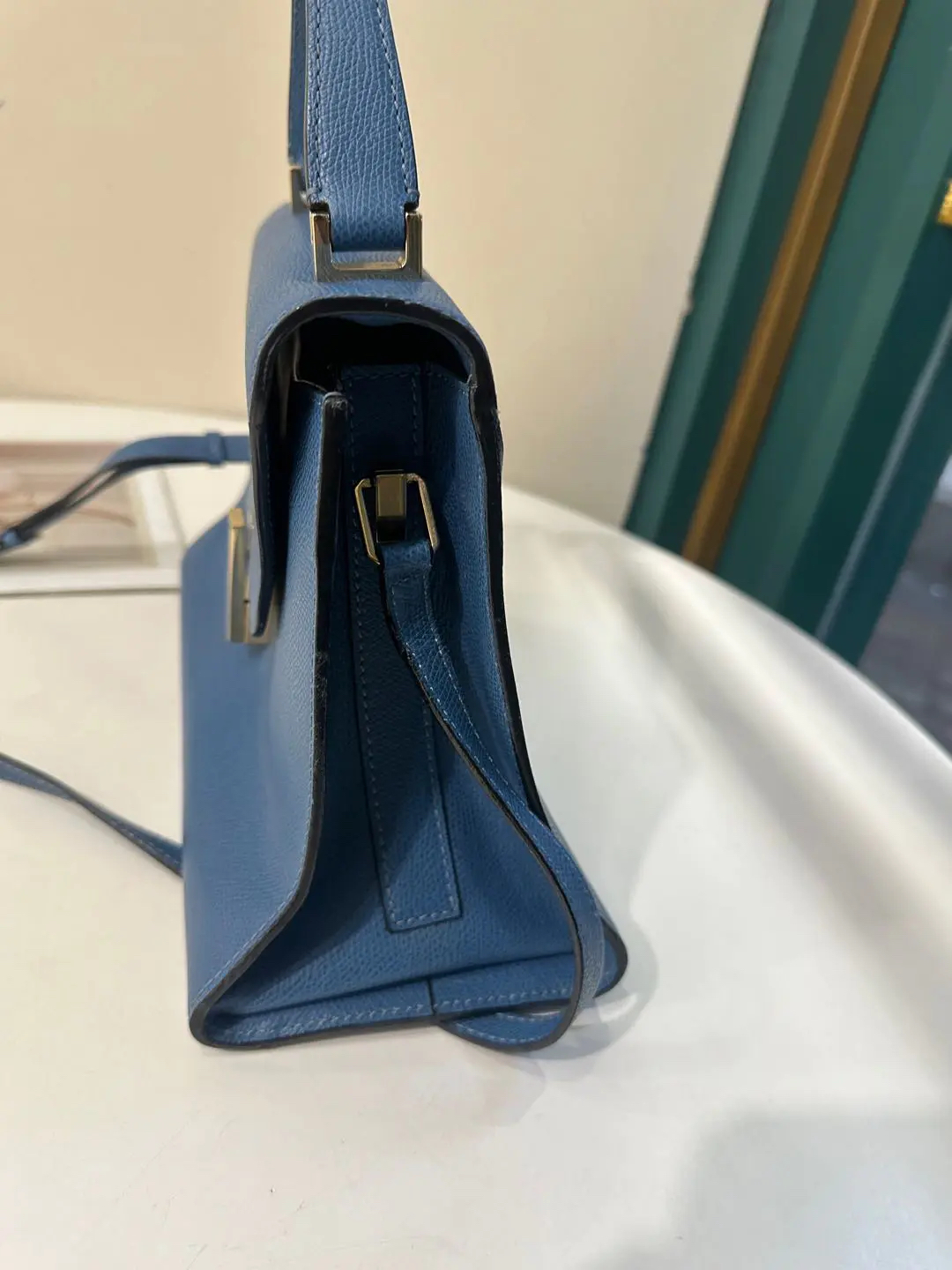 【商品详情】正品二手 Valextra Iside 蓝色 十字纹牛皮 手提 斜挎包🍭95新 20*26 配件:防尘袋。金属正常使用感。简约大气
