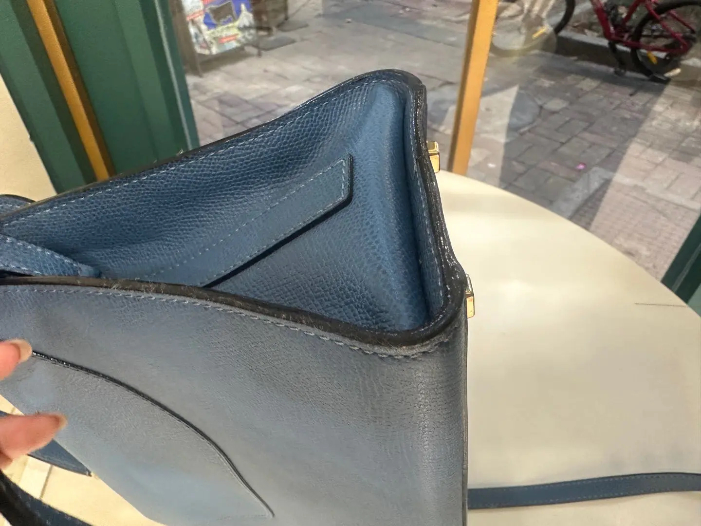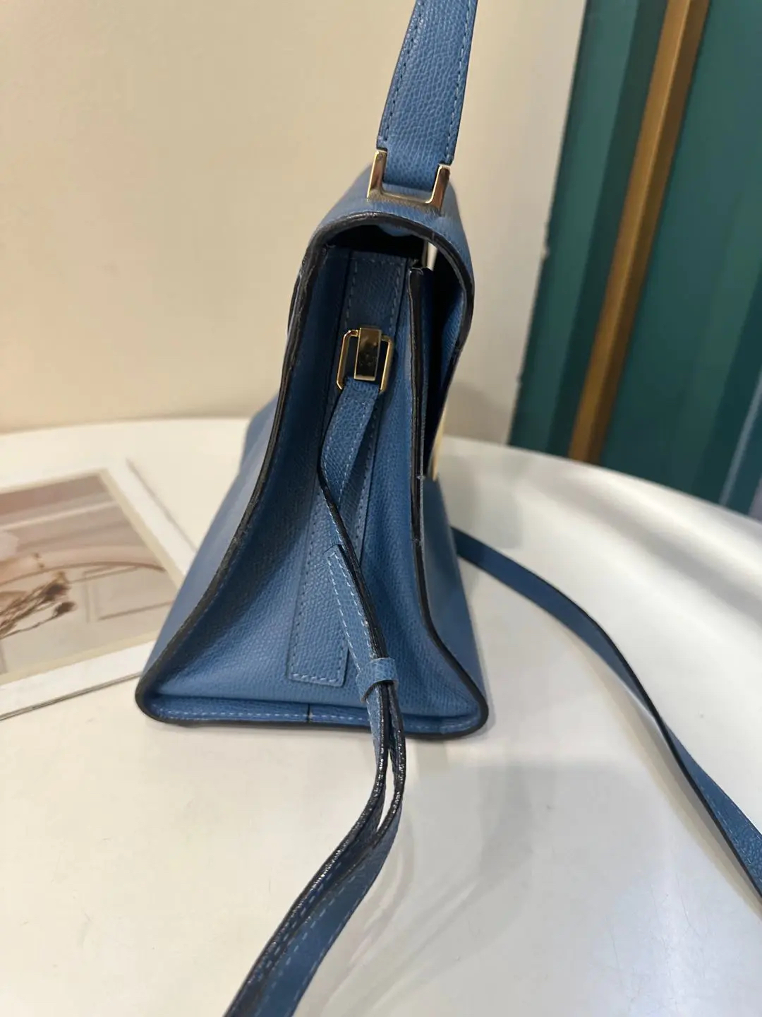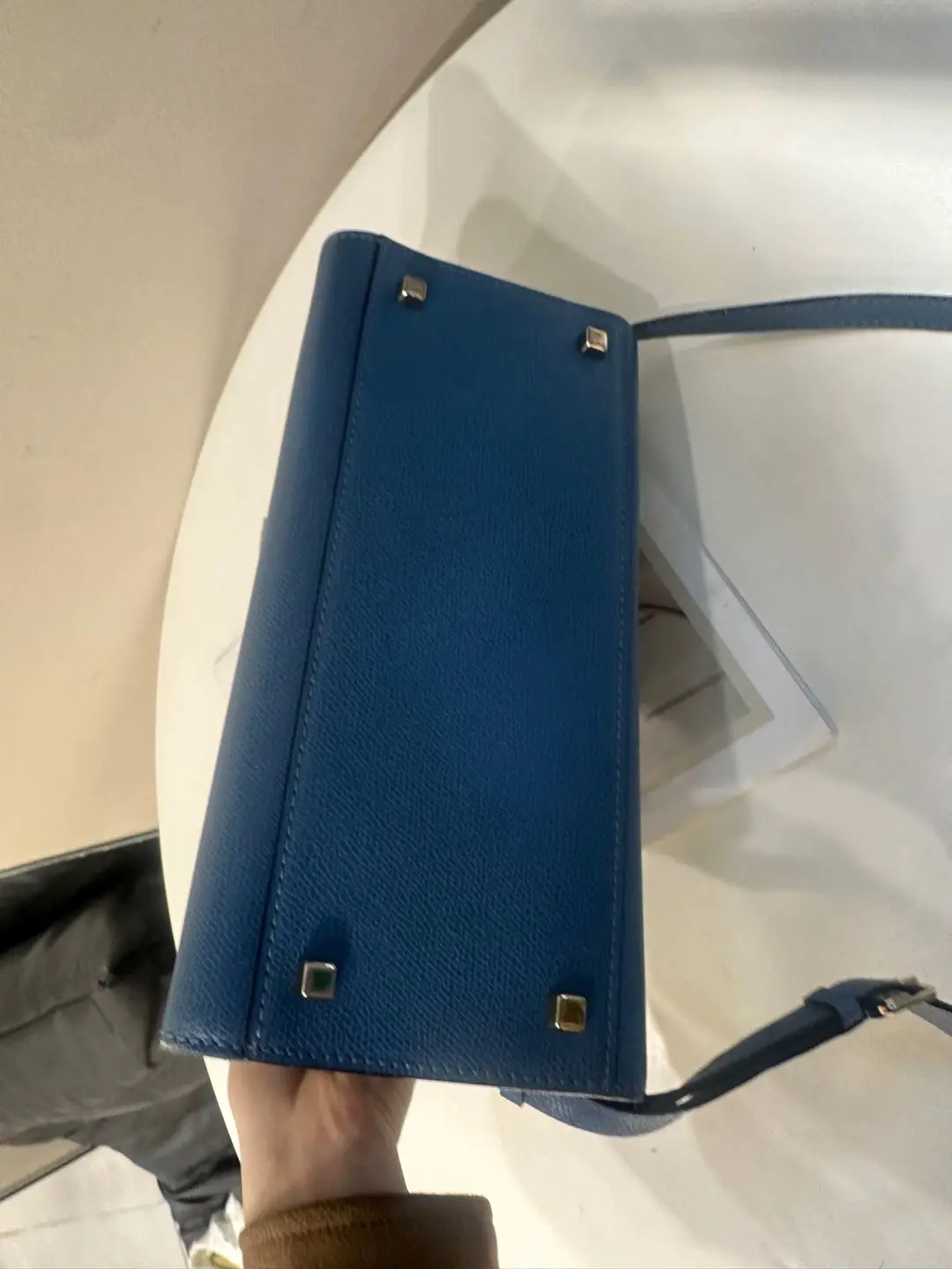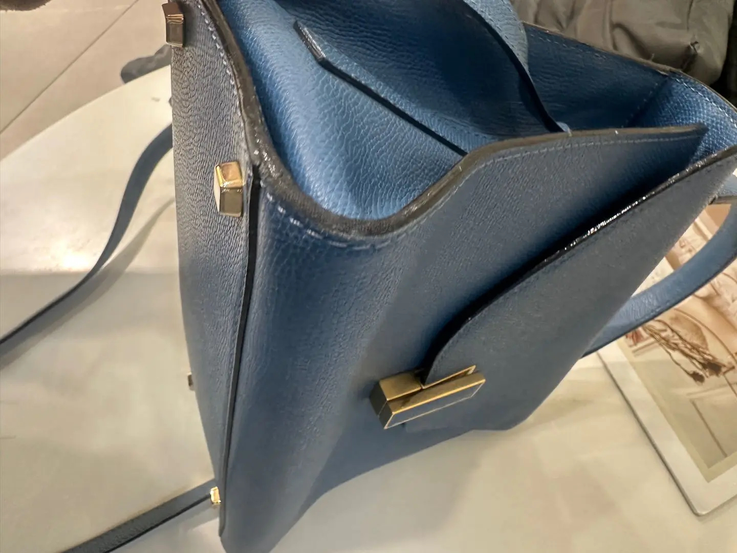 【商品详情】正品二手 Valextra Iside 蓝色 十字纹牛皮 手提 斜挎包🍭95新 20*26 配件:防尘袋。金属正常使用感。简约大气