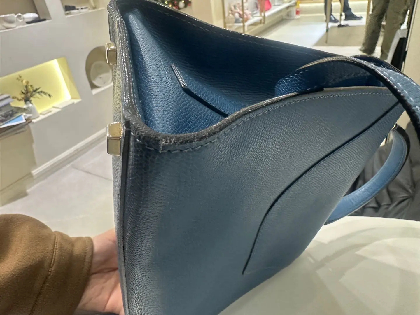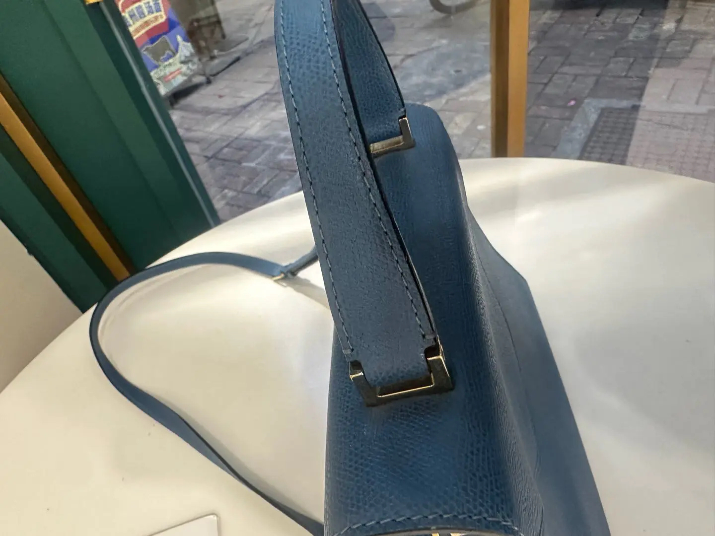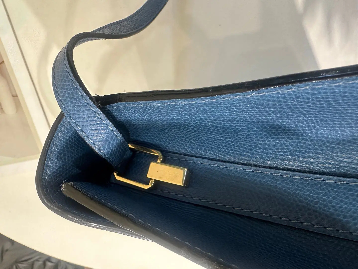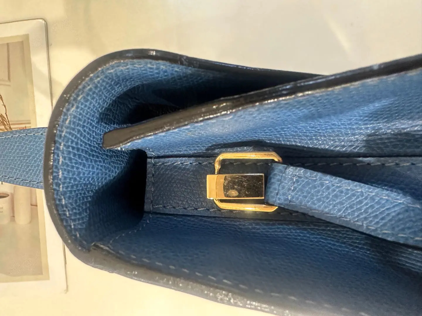 【商品详情】正品二手 Valextra Iside 蓝色 十字纹牛皮 手提 斜挎包🍭95新 20*26 配件:防尘袋。金属正常使用感。简约大气