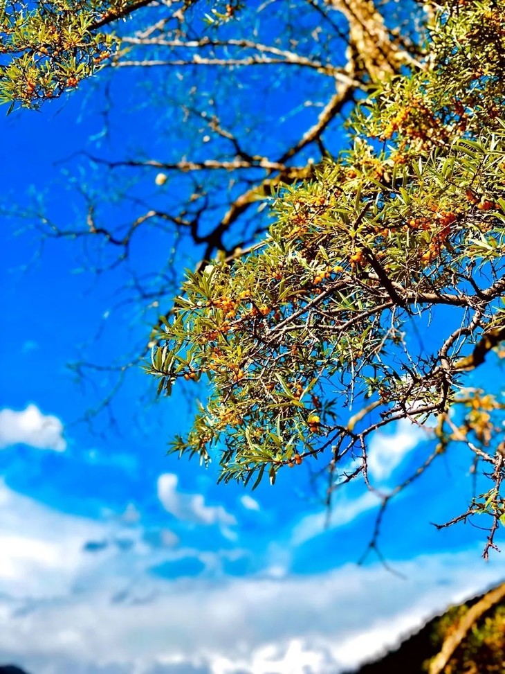 路上还有少量沙棘树,沙棘是目前世界上含有天然维生素种类最多的珍贵经济林树种,其维生素C的含量远远高于鲜枣和猕猴桃,从而被誉为天然维生素的宝库。