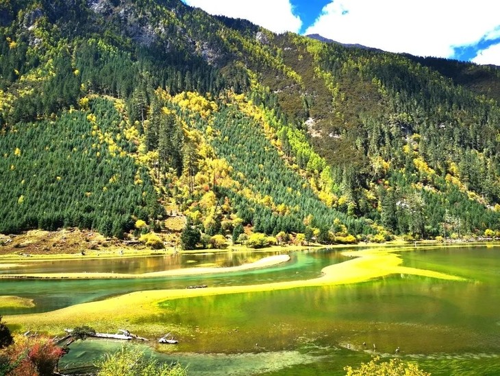 春夏之时,海子四周鲜花盛开,满谷幽香,疑为仙境。秋冬季节,山林密布彩林、与纯洁的雪山相映,另有一番感受。