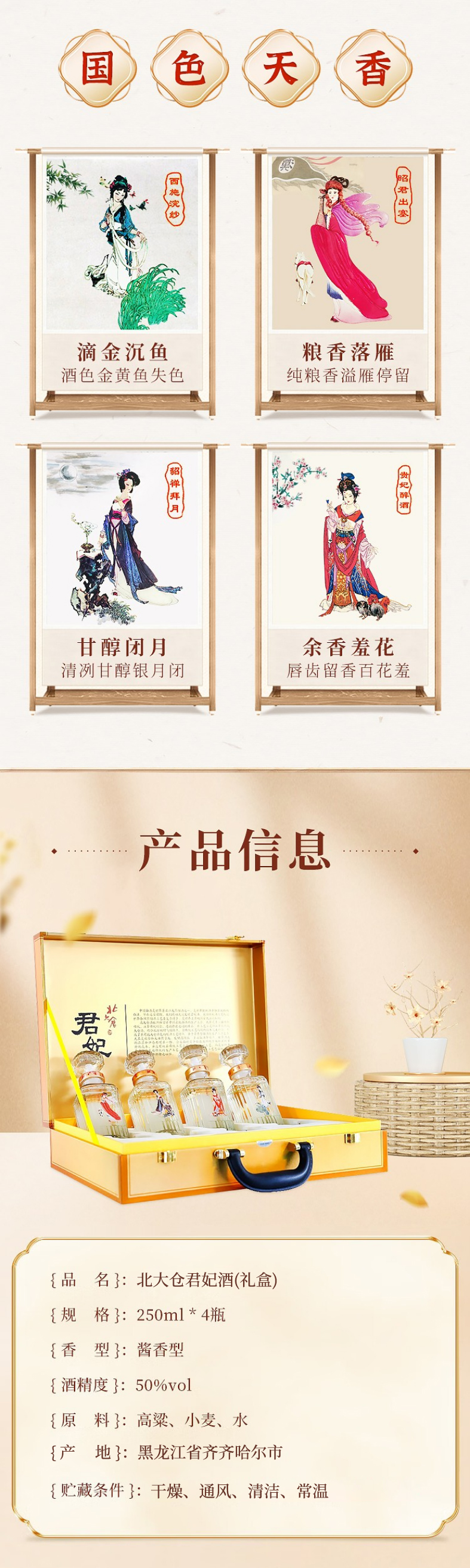 【酱香型】北大仓君妃白酒250ml*4 【礼盒】 50度