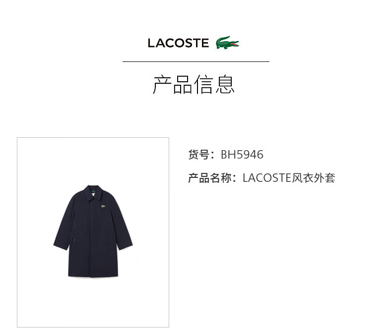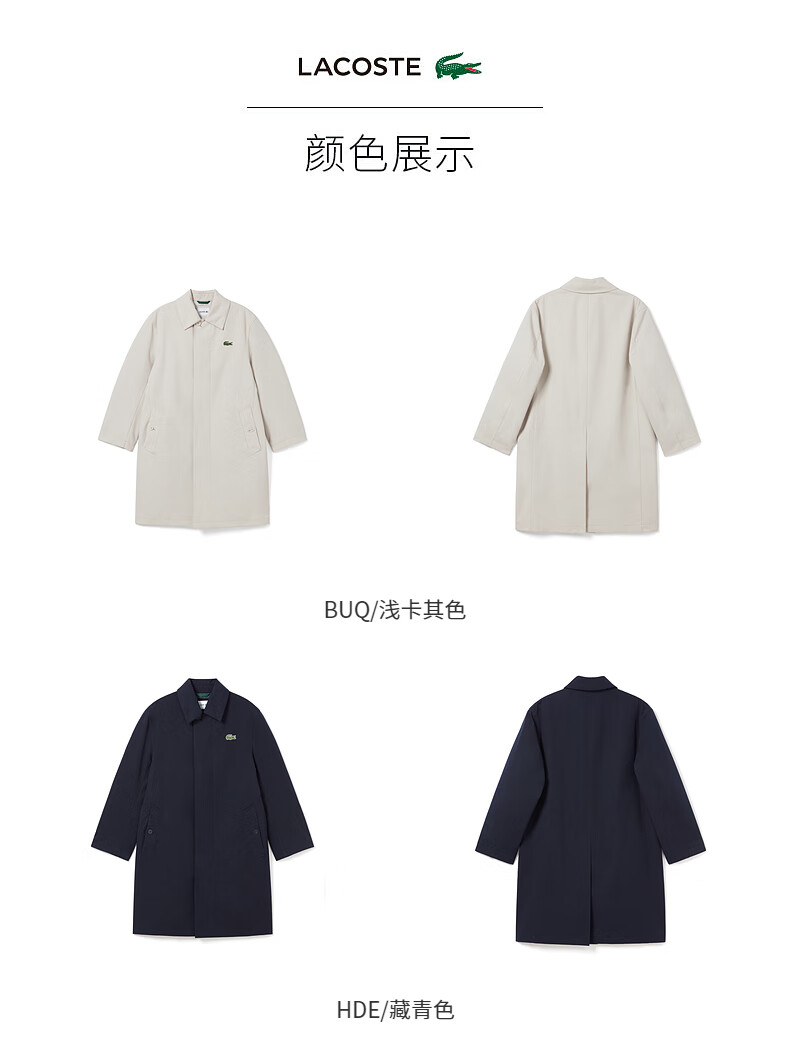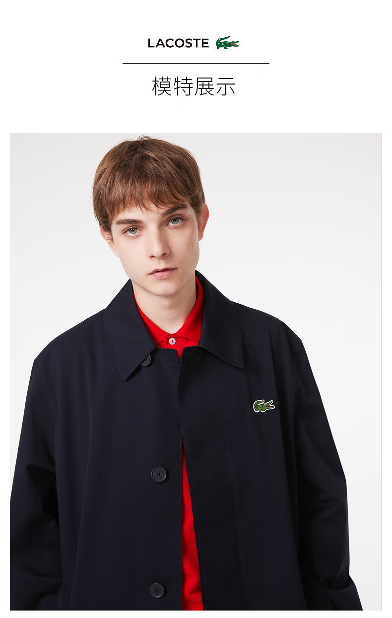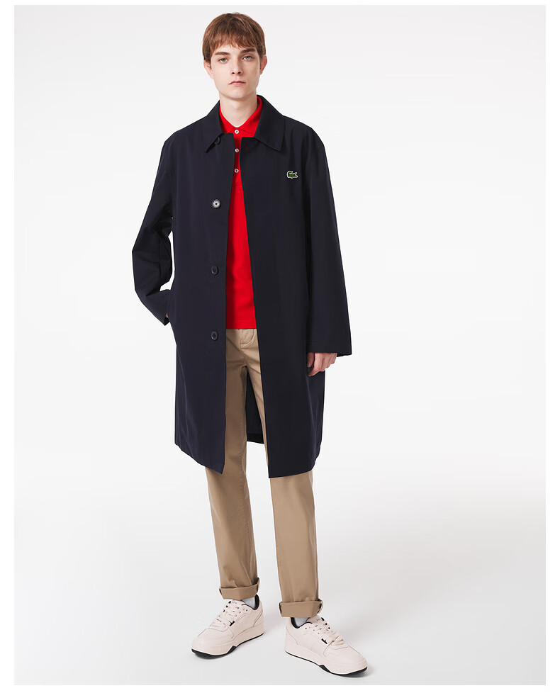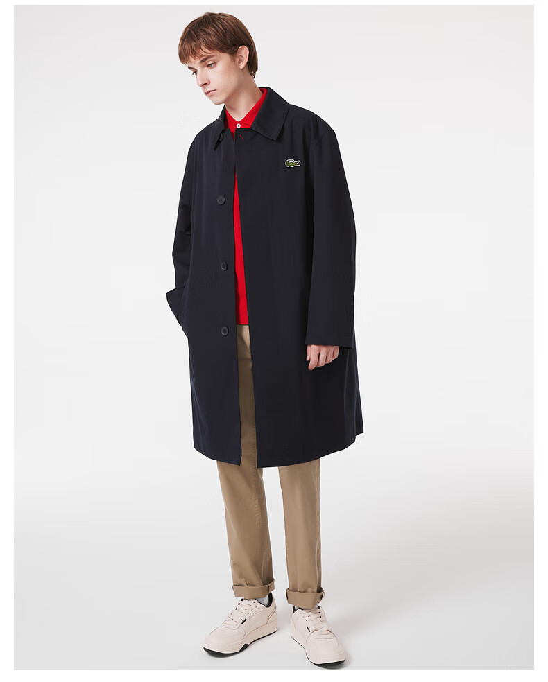 【海南专供价】Lacoste法国鳄鱼男装休闲简约中长款翻领风衣外套BH5946-98