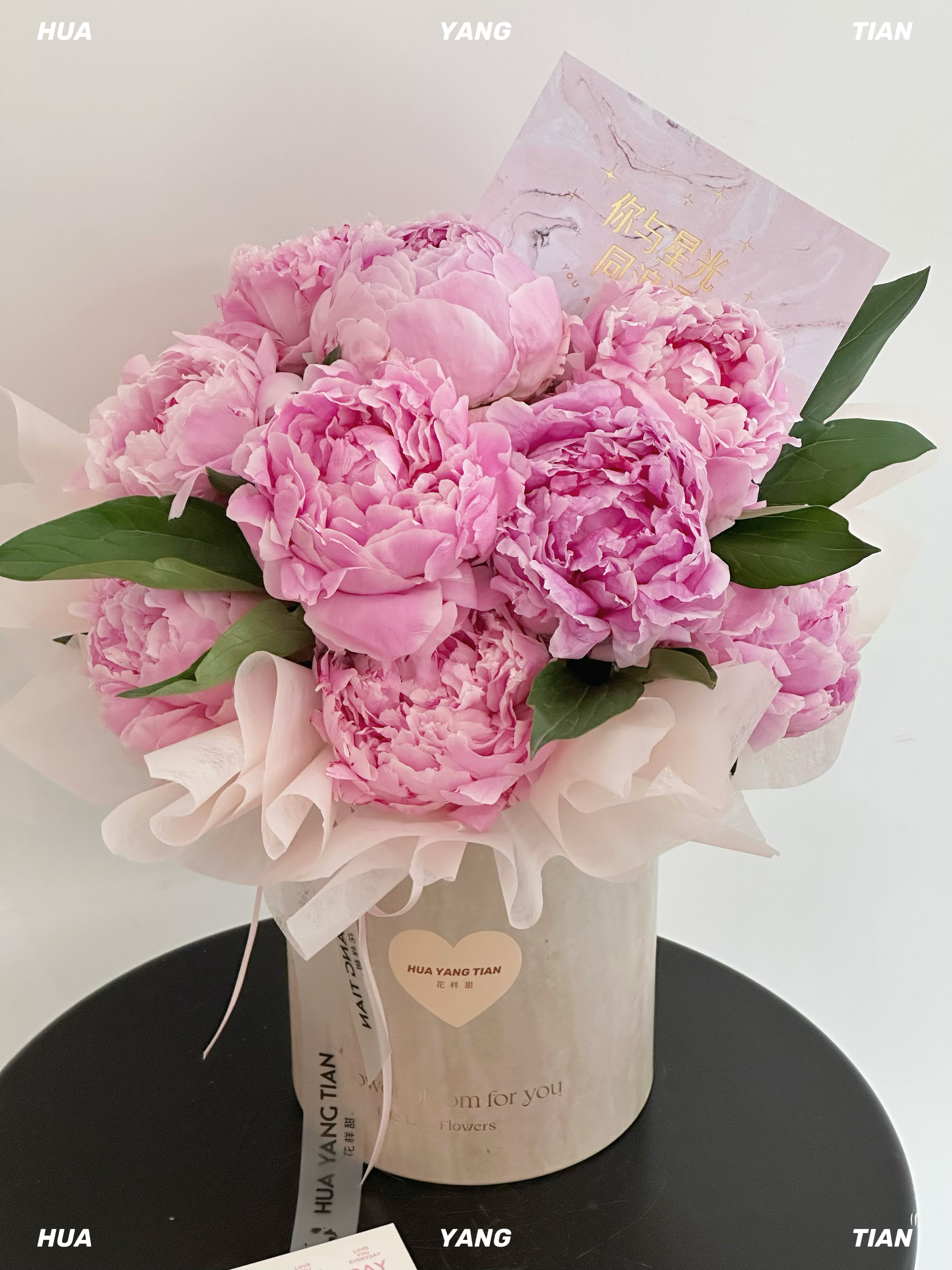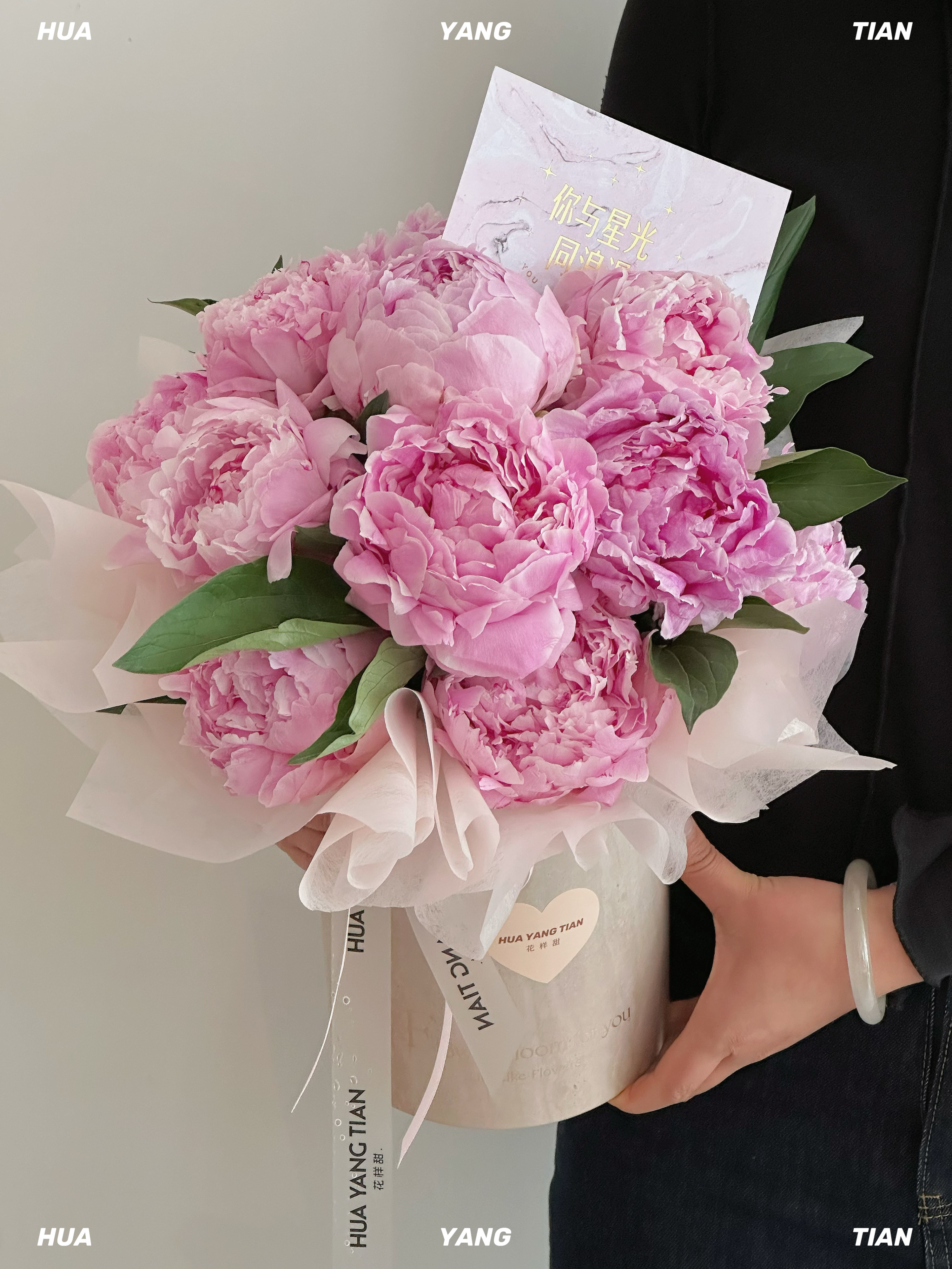 花筒之中,一束浅粉色的芍药花轻盈绽放
