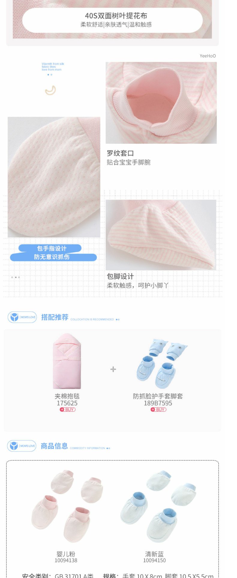英氏-配饰类(秋)C9粉树叶提花手脚套 樱桃粉